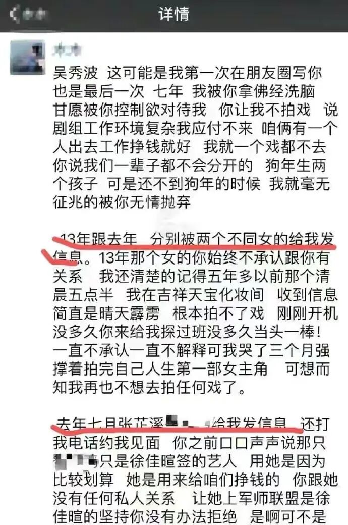 于是气愤上头的陈昱霖就以“正主”的身份,在网络上公开撕其他女生,想要挽回吴秀波的心,但她完全忘记了,自己也是一个地下情人的身份。