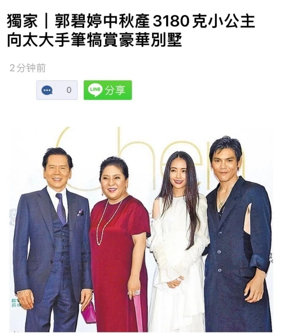 据媒体消息,10月1日,中秋之夜,郭碧婷生下一个女宝宝,重7磅,合3180克,体重很标准~
