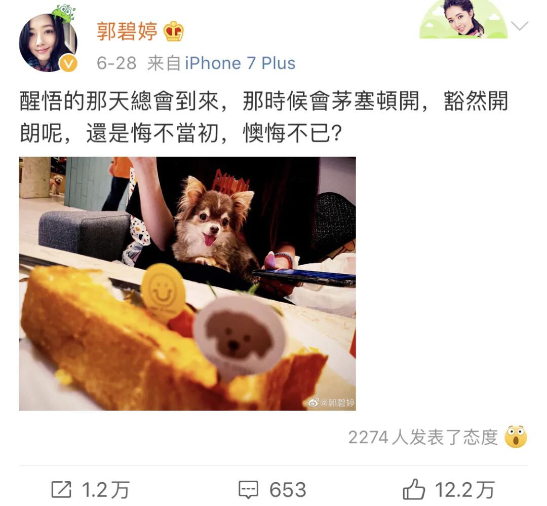 所以我很担心,不久之后会不会在热搜上出现关于郭碧婷“抑郁”“以泪洗面”等消息。从之前的种种来判断,这种可能太有了。