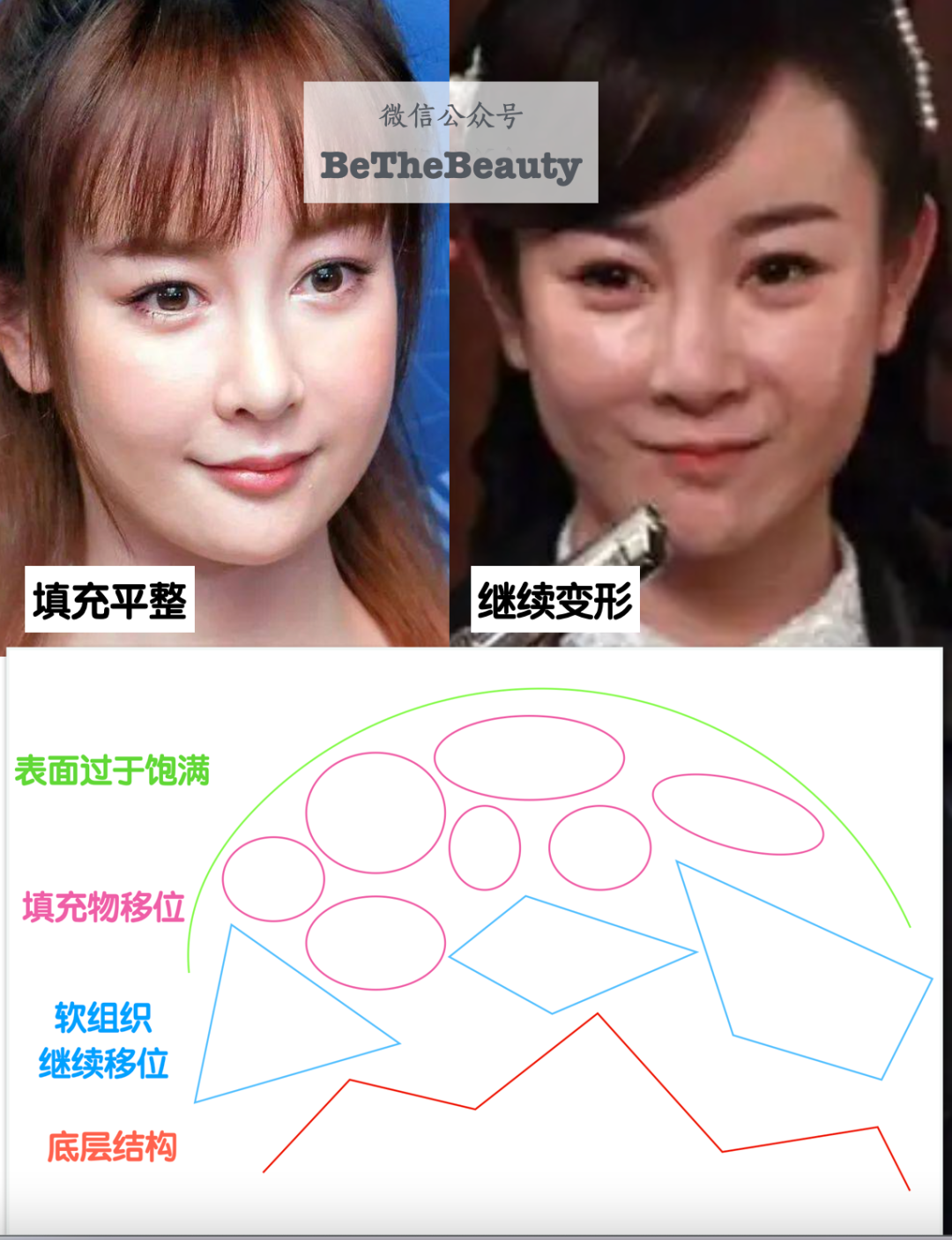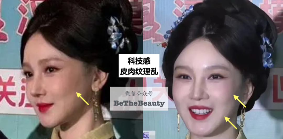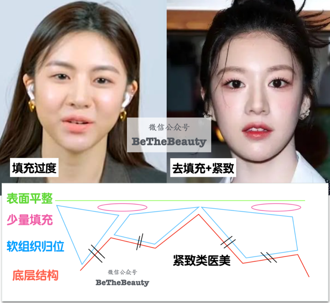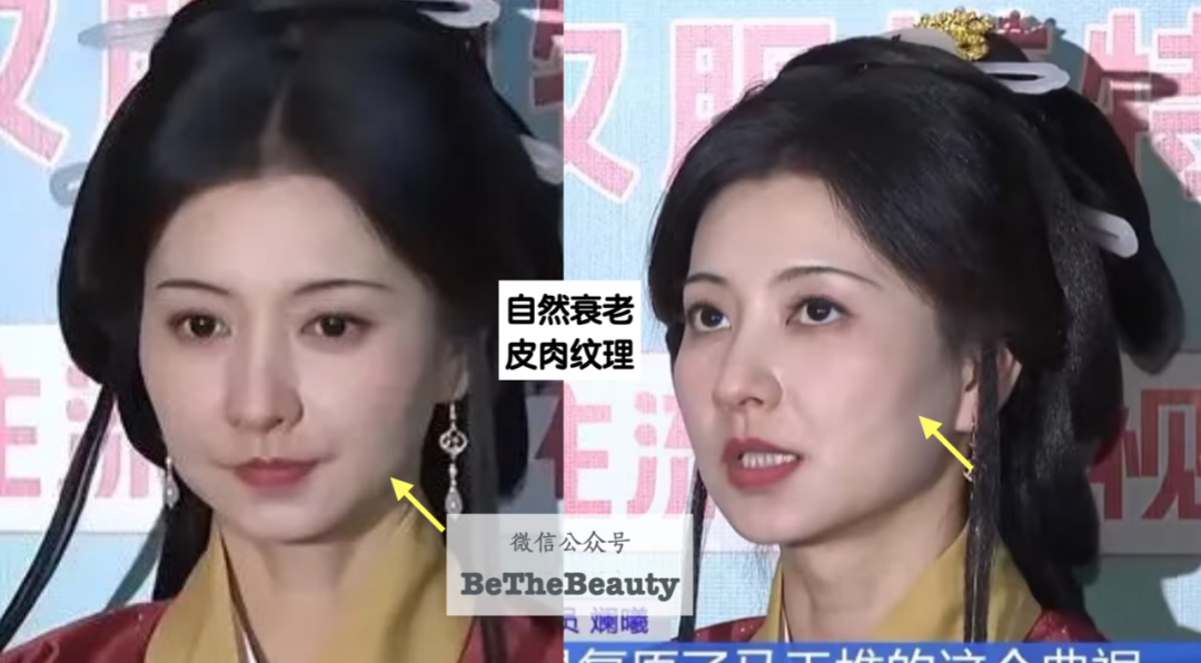 王子文vs杨紫:do脸天花板翻车vs科技感普味变美,咋打败「do脸保质期」? BeTheBeauty 内地女星 2024-12-15 11:18:39 174 创作不易,用心坚持,欢迎请BaGua喝几杯爱心咖啡!打赏并支持本文 打赏并删除本文 Do脸是不是有保质期?会有这疑问,是因为最近,两位之前都被肯定「很会调」的明星,都被拍到大翻车:首先是王子文,公认填充天花板:▲右边真的很绝但最近上活动,被拍到这一组,感觉相当崩:▲啊类似还有孔雪儿,之前美商在线被夸进化成功:▲右边好看太多但最近现场照,被拍到脸变形:▲鼻子、嘴、脸都歪了相反,一直被怼普和不自然的杨紫:▲一些翻车造型最近倒是大翻身,跟张柏芝合照也没被碾压:▲当然张柏芝这个造型也很一言难尽为啥这仨有人翻车,有人翻身,是因为do脸有保质期吗?普通人咋避雷,才能状态长期在线还自然?我是简妮,喜欢拆解一切变美、变智慧、变幸福的「底层逻辑」,7年内获数千万人认可的「授人以渔」型干货博主。今天就听我跟大家聊聊看吧,一期掰开揉碎讲清~ 保你看完一定有新视角!01翻车因为啥?先打个预防针,下面的内容可能跟很多人以为的很不一样。毕竟,你们看过的很多内容,可能都是一张崩图,然后告诉你做啥做啥项目就能好——简妮我不打算这么写,甚至要告诉你,真信这套,很容易被忽悠。为啥我这么说呢?就比如开头王子文翻车这个,公平点说确实很翻:▲感觉老了很多但实际上,同场活动,换个角度和灯光,人家状态挺好的:▲这线条▲动图也挺好那你要把这个状态当翻车,然后去反do一遍项目,可不就是精准搞反了吗?实际上,差状态是真的,好状态也是真的,要理解为啥能共存,就要引入一个概念「内轮廓」。我们平常说的脸型,例如瓜子脸鹅蛋脸这种,其实是脸型的外圈。但除此之外,还有「内轮廓」或者说脸型的「内圈」(这概念我说了好几年啦),这也会影响外观:▲外圈外轮廓、内圈内轮廓放大一点,我们会发现,「内轮廓」上半段更多看骨骼,看你太阳穴、眉骨和颧骨的轮廓(因为这块没啥肉)。▲上半段流畅vs上半段骨骼不太匹配显得缺块而「内轮廓」的下半段则更看皮肉:包括不限于,颧骨下皮肉有没有凹显出肌肉线条,软组织有没有移位,整体凹还是饱满等。▲内轮廓下半段,看皮肉的纹理「骨相」「皮相」大家应该已经听厌了,但其实「肉相」也很重要——虽然肉相好不一定能大幅抬高颜值,但肉相差绝对能狠拖个后腿,包括很容易显年龄感和脸崩感,且听我细细道来:年轻人「肉相」通常比较好,组织都在该在的位置,表层还有一层胶原蛋白和脂肪「找平」。整体看起来,就像完整的蛋糕坯上,厚糊了一层奶油,看着就润润的、平平的。▲刘亦菲的肉相就相当不错,原始状态就很平整但有些人天生肉相就不太行,有些地方缺点肉,有些地方多点肉,或者肉不在该在的位置。年轻的时候仔细看,就有点瑕疵:▲王子文年轻就有嘴角嘟嘟肉,颧骨下肉少略凹那这种脸即使后续填充得很好,能做到外轮廓很饱满流畅:▲王子文脸型确实不错但先天肉的分布不太行这点,无法完全逆转,还是需要在接受基础上改善,然后扬长避短。像王子文,简妮我觉得她是填充天花板毫无问题,因为她do得非常恰好好处。中间有段时间,脸颊是凹的,人也看着很硬很刻薄:▲估计是去脂了对比后续填充天花板时期,后期内轮廓明显变软变饱满,回春感很强:▲略微饱满了但即使是填得很恰好,也无法从根本上逆转天生肉分布不太行这点,所以挑妆、挑光线。其实王一般光线下看,状态都还不错:▲随手找几个但如果是跟这次翻车类似的侧打光,凸显内轮廓里下半张脸的皮肉纹理,就会感觉皮肉「乱七八糟」的:▲不太行有补光会好一点,就是内轮廓这条线没太明显,看着都还行:▲还行但肉相不行,顶光也很要命,很容易强化多肉凸起的部分:▲嘴角嘟嘟肉和法令纹处堆积,都很明显这方面最惨烈的当属伊能静,婚礼想有个好状态无可厚非,但偏偏遇上顶光:▲高圆圆真神颜所以你会发现大量皮肉有问题的人,一碰到顶光or偏顶光就非常翻车:▲孔雪儿▲后期朴敏英别说do脸派了,天然派如果不会选光线,也容易扬短避长。例如陈都灵,其实整体面部还是比较平整年轻的,但嘴角比较松弛,口周皮肉比较乱,轻微而已:▲绝大多数时候都不明显光线柔和散射时,只看到整体莹润如珍珠,看不出小问题:▲说是女大学生都没问题但你换侧光,效果就不好说了。笑起来还好:▲因为笑起来会上提说起话来,就各种别扭:▲下半脸的肌肉纹理很乱▲跟王子文这里异曲同工所以啊,不要看到「崩图」就恐慌,人没有360°各种光线都好看的,又不是人均张柏芝。很多崩图,其实也只是「那个角度」「那个光线」特别崩,明星也逃不过,更别说咱普通人了,别直接就容貌焦虑了。因为,一旦你容貌焦虑,那你很可能直接把自己带坑里,让肉相差上加差——02肉相问题在哪要知道,任何肉相的人,「年轻」时都自带肉相平整buff。肉少一点骨支撑力强点的,内轮廓线条利落点。肉多一点骨支撑力弱点的,内轮廓线条散软些,但整体都还比较平整。▲肉少肉多,两种形态但随着年纪增大,一个是软组织会移位,类似一个完整的蛋糕坯分裂成了好几块,而且都在漂移,底就不平。▲脂肪开始四散▲示意图▲脸也不再平整,变成好几块而胶原蛋白和脂肪的流失,还会让表层的「奶油」大幅变薄,更明显显出凹凸、线条、断层等。章泽天这点很典