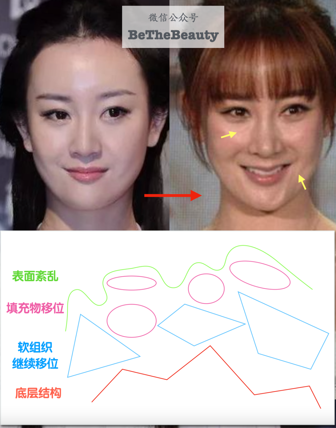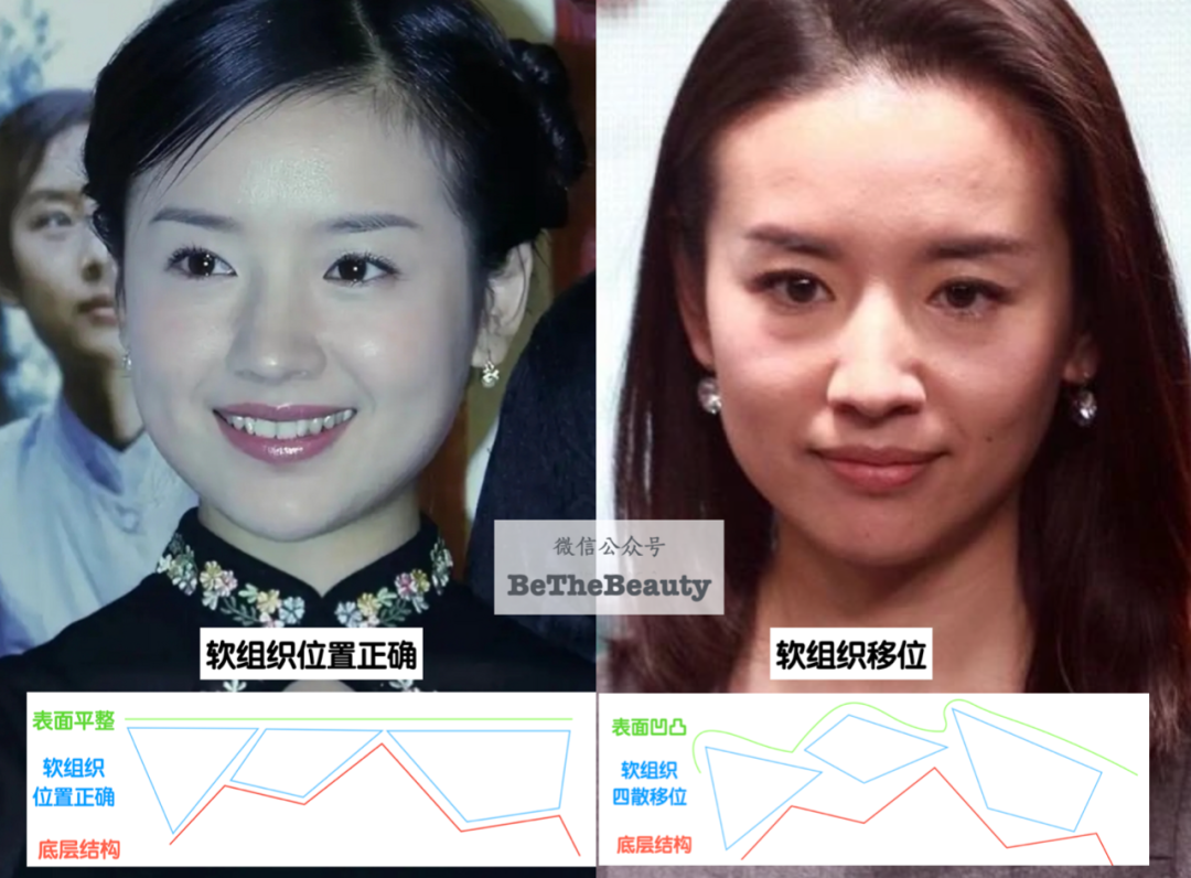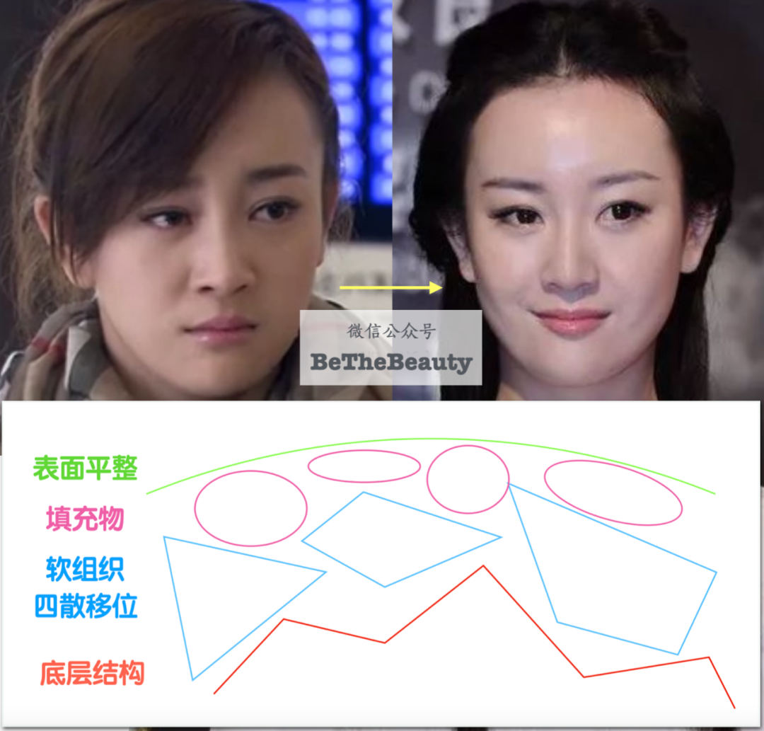 王子文vs杨紫:do脸天花板翻车vs科技感普味变美,咋打败「do脸保质期」? BeTheBeauty 内地女星 2024-12-15 11:18:39 174 创作不易,用心坚持,欢迎请BaGua喝几杯爱心咖啡!打赏并支持本文 打赏并删除本文 Do脸是不是有保质期?会有这疑问,是因为最近,两位之前都被肯定「很会调」的明星,都被拍到大翻车:首先是王子文,公认填充天花板:▲右边真的很绝但最近上活动,被拍到这一组,感觉相当崩:▲啊类似还有孔雪儿,之前美商在线被夸进化成功:▲右边好看太多但最近现场照,被拍到脸变形:▲鼻子、嘴、脸都歪了相反,一直被怼普和不自然的杨紫:▲一些翻车造型最近倒是大翻身,跟张柏芝合照也没被碾压:▲当然张柏芝这个造型也很一言难尽为啥这仨有人翻车,有人翻身,是因为do脸有保质期吗?普通人咋避雷,才能状态长期在线还自然?我是简妮,喜欢拆解一切变美、变智慧、变幸福的「底层逻辑」,7年内获数千万人认可的「授人以渔」型干货博主。今天就听我跟大家聊聊看吧,一期掰开揉碎讲清~ 保你看完一定有新视角!01翻车因为啥?先打个预防针,下面的内容可能跟很多人以为的很不一样。毕竟,你们看过的很多内容,可能都是一张崩图,然后告诉你做啥做啥项目就能好——简妮我不打算这么写,甚至要告诉你,真信这套,很容易被忽悠。为啥我这么说呢?就比如开头王子文翻车这个,公平点说确实很翻:▲感觉老了很多但实际上,同场活动,换个角度和灯光,人家状态挺好的:▲这线条▲动图也挺好那你要把这个状态当翻车,然后去反do一遍项目,可不就是精准搞反了吗?实际上,差状态是真的,好状态也是真的,要理解为啥能共存,就要引入一个概念「内轮廓」。我们平常说的脸型,例如瓜子脸鹅蛋脸这种,其实是脸型的外圈。但除此之外,还有「内轮廓」或者说脸型的「内圈」(这概念我说了好几年啦),这也会影响外观:▲外圈外轮廓、内圈内轮廓放大一点,我们会发现,「内轮廓」上半段更多看骨骼,看你太阳穴、眉骨和颧骨的轮廓(因为这块没啥肉)。▲上半段流畅vs上半段骨骼不太匹配显得缺块而「内轮廓」的下半段则更看皮肉:包括不限于,颧骨下皮肉有没有凹显出肌肉线条,软组织有没有移位,整体凹还是饱满等。▲内轮廓下半段,看皮肉的纹理「骨相」「皮相」大家应该已经听厌了,但其实「肉相」也很重要——虽然肉相好不一定能大幅抬高颜值,但肉相差绝对能狠拖个后腿,包括很容易显年龄感和脸崩感,且听我细细道来:年轻人「肉相」通常比较好,组织都在该在的位置,表层还有一层胶原蛋白和脂肪「找平」。整体看起来,就像完整的蛋糕坯上,厚糊了一层奶油,看着就润润的、平平的。▲刘亦菲的肉相就相当不错,原始状态就很平整但有些人天生肉相就不太行,有些地方缺点肉,有些地方多点肉,或者肉不在该在的位置。年轻的时候仔细看,就有点瑕疵:▲王子文年轻就有嘴角嘟嘟肉,颧骨下肉少略凹那这种脸即使后续填充得很好,能做到外轮廓很饱满流畅:▲王子文脸型确实不错但先天肉的分布不太行这点,无法完全逆转,还是需要在接受基础上改善,然后扬长避短。像王子文,简妮我觉得她是填充天花板毫无问题,因为她do得非常恰好好处。中间有段时间,脸颊是凹的,人也看着很硬很刻薄:▲估计是去脂了对比后续填充天花板时期,后期内轮廓明显变软变饱满,回春感很强:▲略微饱满了但即使是填得很恰好,也无法从根本上逆转天生肉分布不太行这点,所以挑妆、挑光线。其实王一般光线下看,状态都还不错:▲随手找几个但如果是跟这次翻车类似的侧打光,凸显内轮廓里下半张脸的皮肉纹理,就会感觉皮肉「乱七八糟」的:▲不太行有补光会好一点,就是内轮廓这条线没太明显,看着都还行:▲还行但肉相不行,顶光也很要命,很容易强化多肉凸起的部分:▲嘴角嘟嘟肉和法令纹处堆积,都很明显这方面最惨烈的当属伊能静,婚礼想有个好状态无可厚非,但偏偏遇上顶光:▲高圆圆真神颜所以你会发现大量皮肉有问题的人,一碰到顶光or偏顶光就非常翻车:▲孔雪儿▲后期朴敏英别说do脸派了,天然派如果不会选光线,也容易扬短避长。例如陈都灵,其实整体面部还是比较平整年轻的,但嘴角比较松弛,口周皮肉比较乱,轻微而已:▲绝大多数时候都不明显光线柔和散射时,只看到整体莹润如珍珠,看不出小问题:▲说是女大学生都没问题但你换侧光,效果就不好说了。笑起来还好:▲因为笑起来会上提说起话来,就各种别扭:▲下半脸的肌肉纹理很乱▲跟王子文这里异曲同工所以啊,不要看到「崩图」就恐慌,人没有360°各种光线都好看的,又不是人均张柏芝。很多崩图,其实也只是「那个角度」「那个光线」特别崩,明星也逃不过,更别说咱普通人了,别直接就容貌焦虑了。因为,一旦你容貌焦虑,那你很可能直接把自己带坑里,让肉相差上加差——02肉相问题在哪要知道,任何肉相的人,「年轻」时都自带肉相平整buff。肉少一点骨支撑力强点的,内轮廓线条利落点。肉多一点骨支撑力弱点的,内轮廓线条散软些,但整体都还比较平整。▲肉少肉多,两种形态但随着年纪增大,一个是软组织会移位,类似一个完整的蛋糕坯分裂成了好几块,而且都在漂移,底就不平。▲脂肪开始四散▲示意图▲脸也不再平整,变成好几块而胶原蛋白和脂肪的流失,还会让表层的「奶油」大幅变薄,更明显显出凹凸、线条、断层等。章泽天这点很典