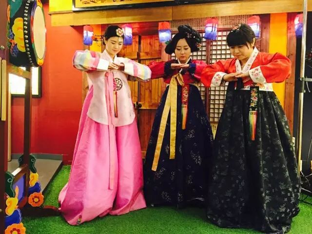 在本次旅途中天海邮轮专设韩服体验区,游客们可以试穿韩服、照相与现场模特互动,未到韩国先体验韩国的味道。