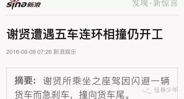 第二天一大早,谢贤的新闻就登上头条!原来是遇到车祸了!