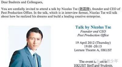 2012年,谢霆锋接受香港科技大学的邀请,以亚洲商业领袖身份开设个人讲座,并入选该院世界十强的MBA案例,是首位被载入全球MBA案例的华人。