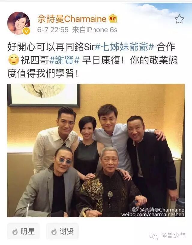 四哥频繁的参与各种节目,除了老当益壮身体好之外,也许他有着霆锋一样对自己事业的喜爱与执着,不坠青云之志!谢贤出道已经50余年,这个年龄,还这么敬业,这么拼搏,真是值得我们敬佩!