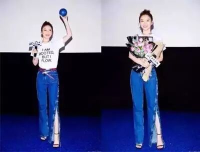 马甲线女王袁姗姗一直都是很励志的存在,开衩长裤配上一款一字带凉鞋,也是很酷。