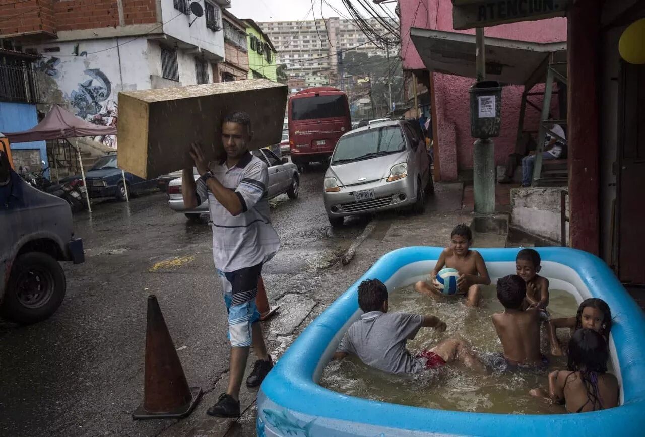 Children play in a swimming pool