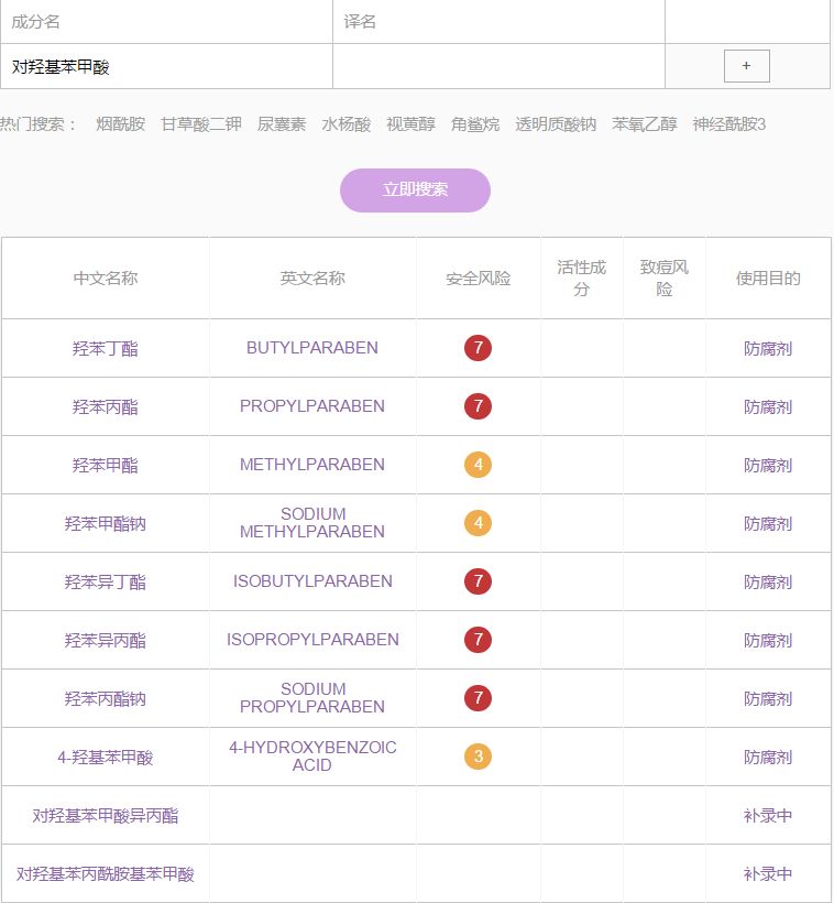 尼泊金酯中甲酯和丁酯比较常用,甲酯相对安全,丁酯过敏反应大一些。