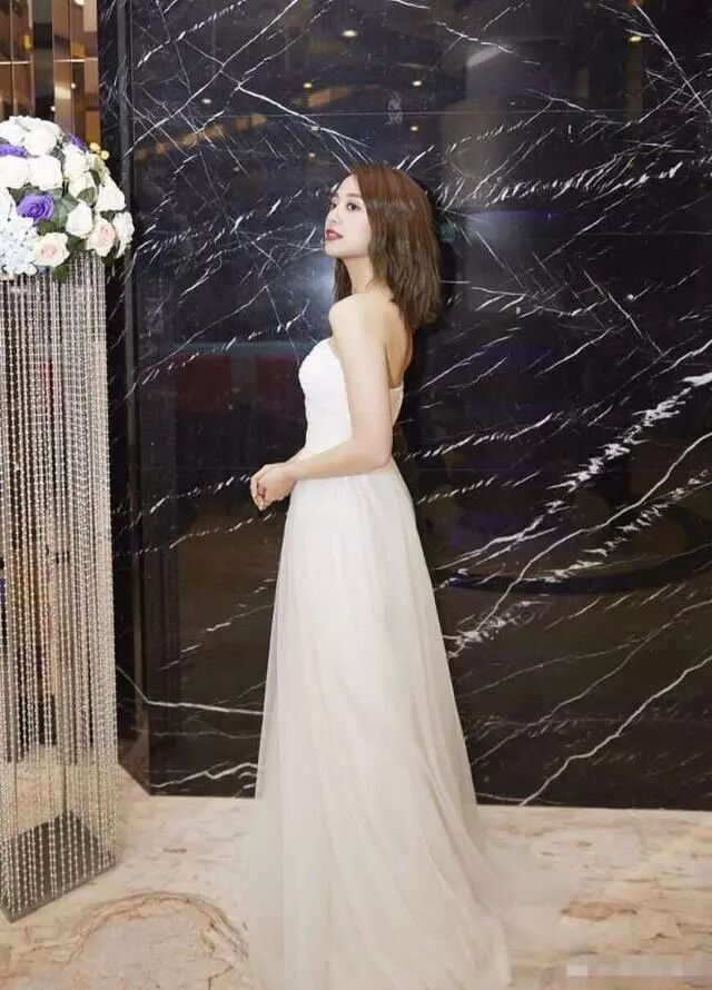 参加婚礼的鬼鬼身穿一袭白色纱裙,为了不抢走新娘的风头,鬼鬼装扮简约大气,但还是衬托出了自己的美,抹胸设计大秀香肩美背,修身版型展现出好身材。