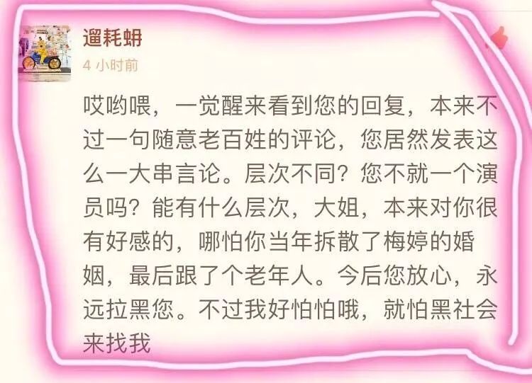 之后网友又回怼,直言李小冉拆散梅婷的婚姻,“最后跟了个老年人”。