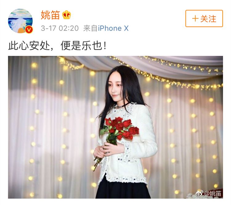 大家都忙着到处送祝福,微博的娱乐新闻里都洋溢着幸福的味道~可是还有一个人被求婚,却得不到祝福,那就是姚笛。姚笛生日当天,晒出了一张手捧玫瑰的照片,配文:此心安处,便是乐也。
