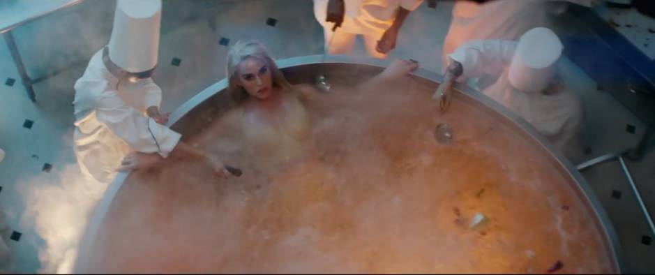 《Bon Appétit》则是欢快的Disco流行舞曲风格,整首歌充满了强烈的性暗示,所谓“秀色可餐”是也。每个乐句非常短小,旋律感被适当弱化,带有一定的说唱性。至于MV,则是一场名为“舌尖上的水果姐”的大型行为艺术。