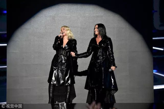 擦妈Christina Aguilera和黛米Demi Lovato这两位的跨年龄组合在舞台上合作了《fall in love》,两人都是可以让听众耳朵怀孕的顶级唱功,互飙高音,碰撞出了新的火花,但同台相比之下还是擦妈的唱功更高一筹,Demi小破一音略显捉襟见肘。