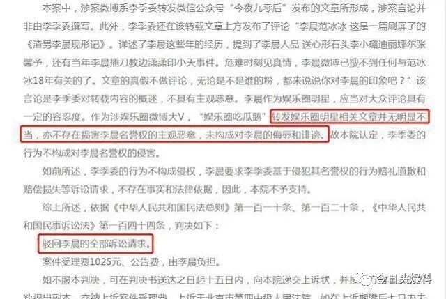 结果最近这个案件的一审判决书也出来了,直接驳回李晨的上诉。