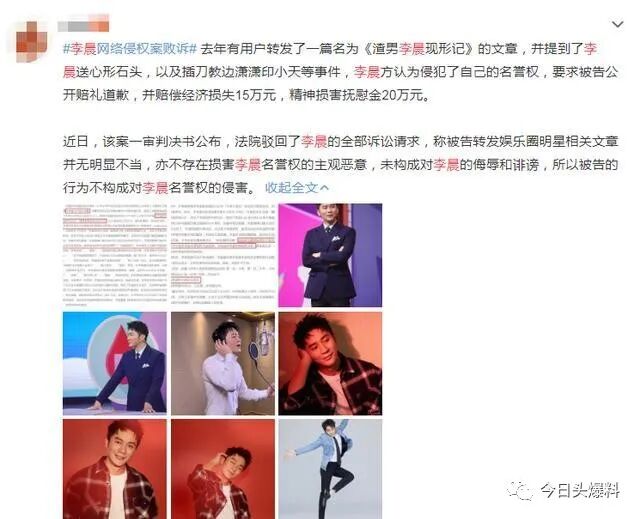 先说李晨名誉案败诉这件事。一般明星告网友都是一告一个准,最后都是网友败诉,公开出来道歉,然后明星原谅这位网友。但是到了李晨这里就很有意思了,居然直接败诉了。