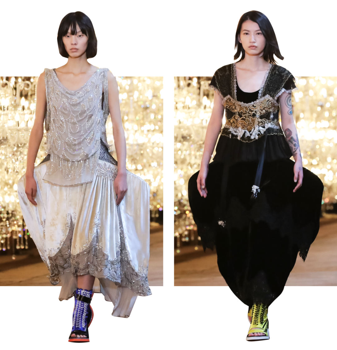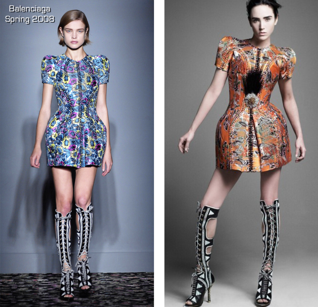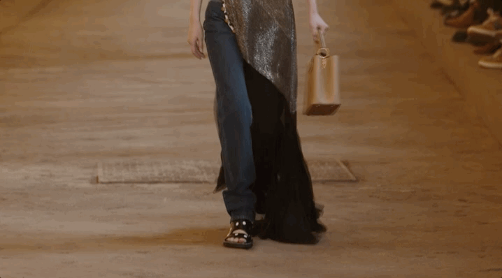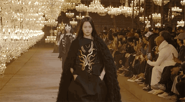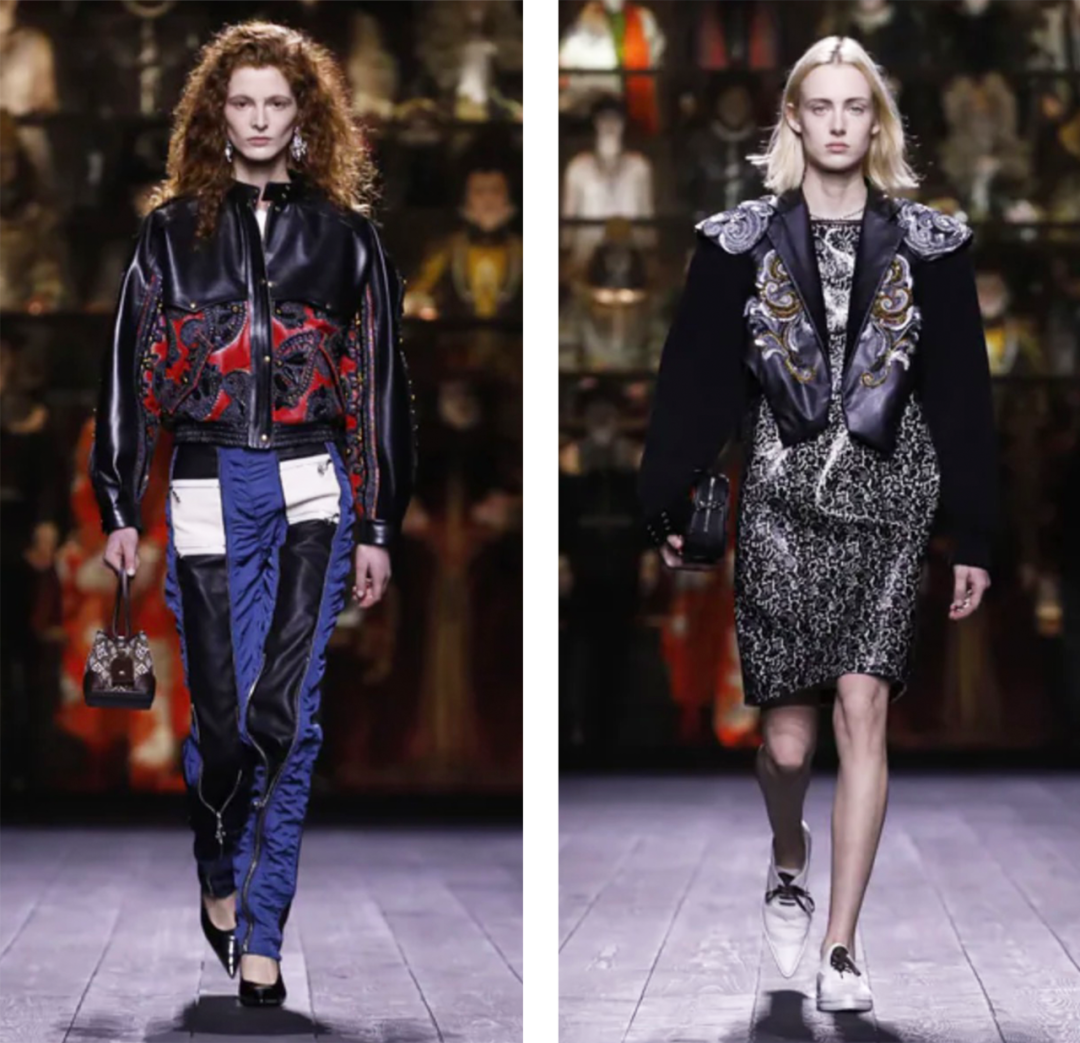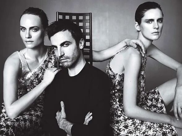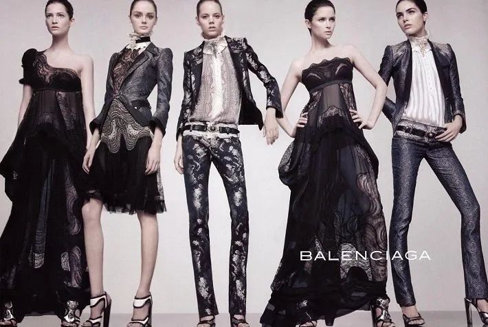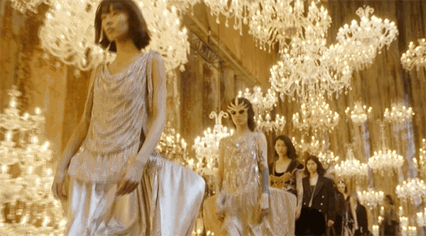 Nicolas Ghesquière来自法国的一个偏远小城市,但他从12岁开始就展露出设计的才华。 他最大的消遣就是在纸上画画,有时设计衣服,有时设计汽车,有一次还把奶奶家里的水晶灯吊坠改装成了入时的耳环。(不知道这次秀场的水晶灯布置,和Nicolas的水晶灯耳环有没有关系?)(Louis Vuitton FW 2014) 18岁的时候,尽管父母极力反对,他还是拒绝了艺术院校的录取,一个人单枪匹马地杀到巴黎,成为了设计师Jean Paul Gaultier(让·保罗·高提耶)的一名小助理。 当时的Nicolas干得最多的活儿不是设计,而是跑腿买咖啡和无休无止的复印打印,但这却是他第一次有机会接触到真实的时装行业。亲眼见证一个完整的系列从无到有的诞生,这可能是比学历更加重要的体验。 Jean Paul Gaultier每次创作新系列的时候都会先描述出自己想要的感觉,他的灵感来源乍听之下会让人倒吸一口冷气:东一点民族元素,西一点宗教元素,看上去毫无章法可言…… 但最后他总有办法把这些零散的灵感全部都烩制成自己全新的创作,而且最厉害的是:毫无生搬硬凑的痕迹。 这种魔法般的融合手法也深深地影响了Nicolas Ghesquière,为他之后的设计奠定了理念上的基础。