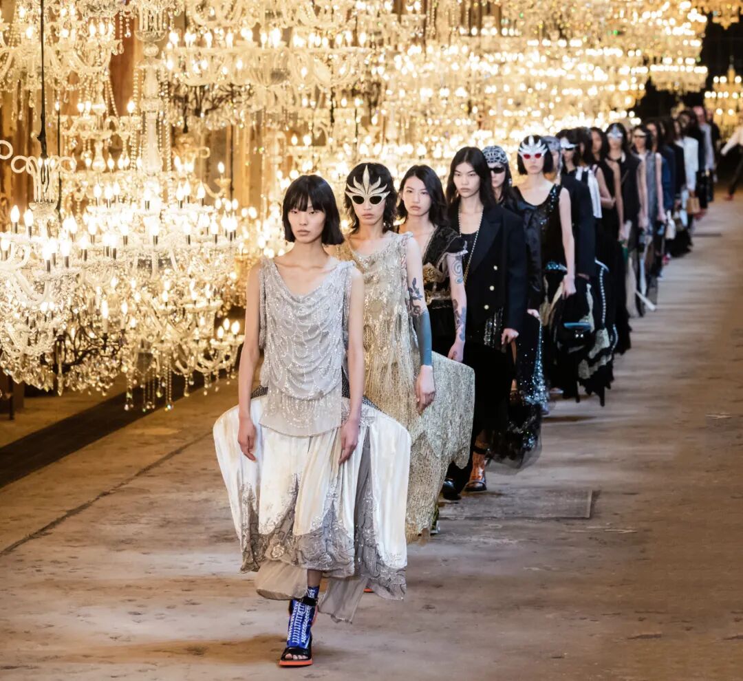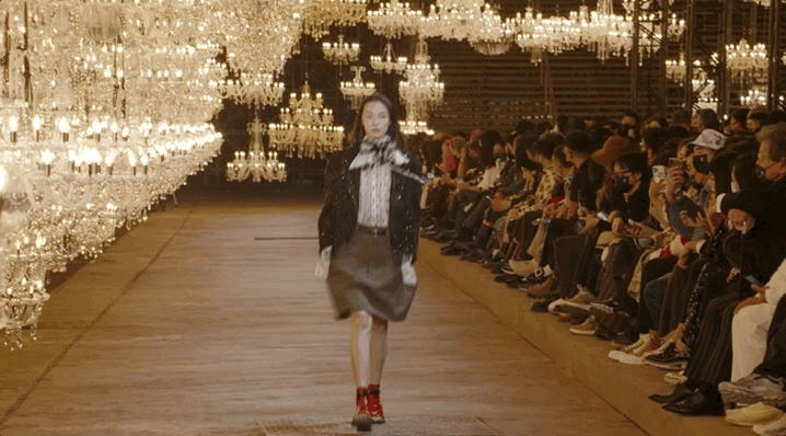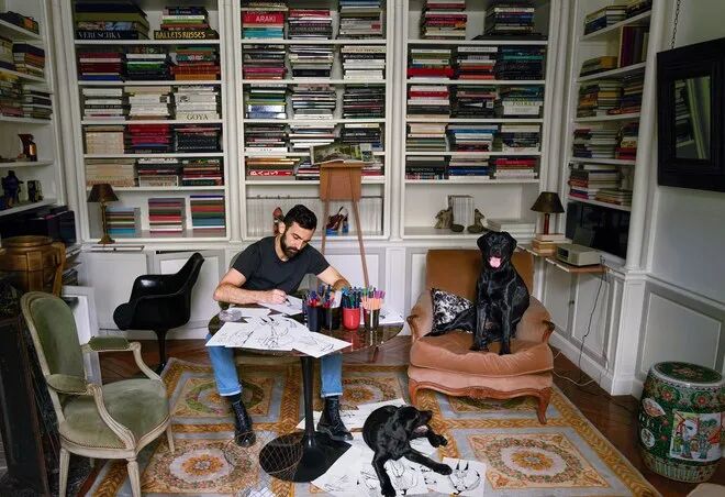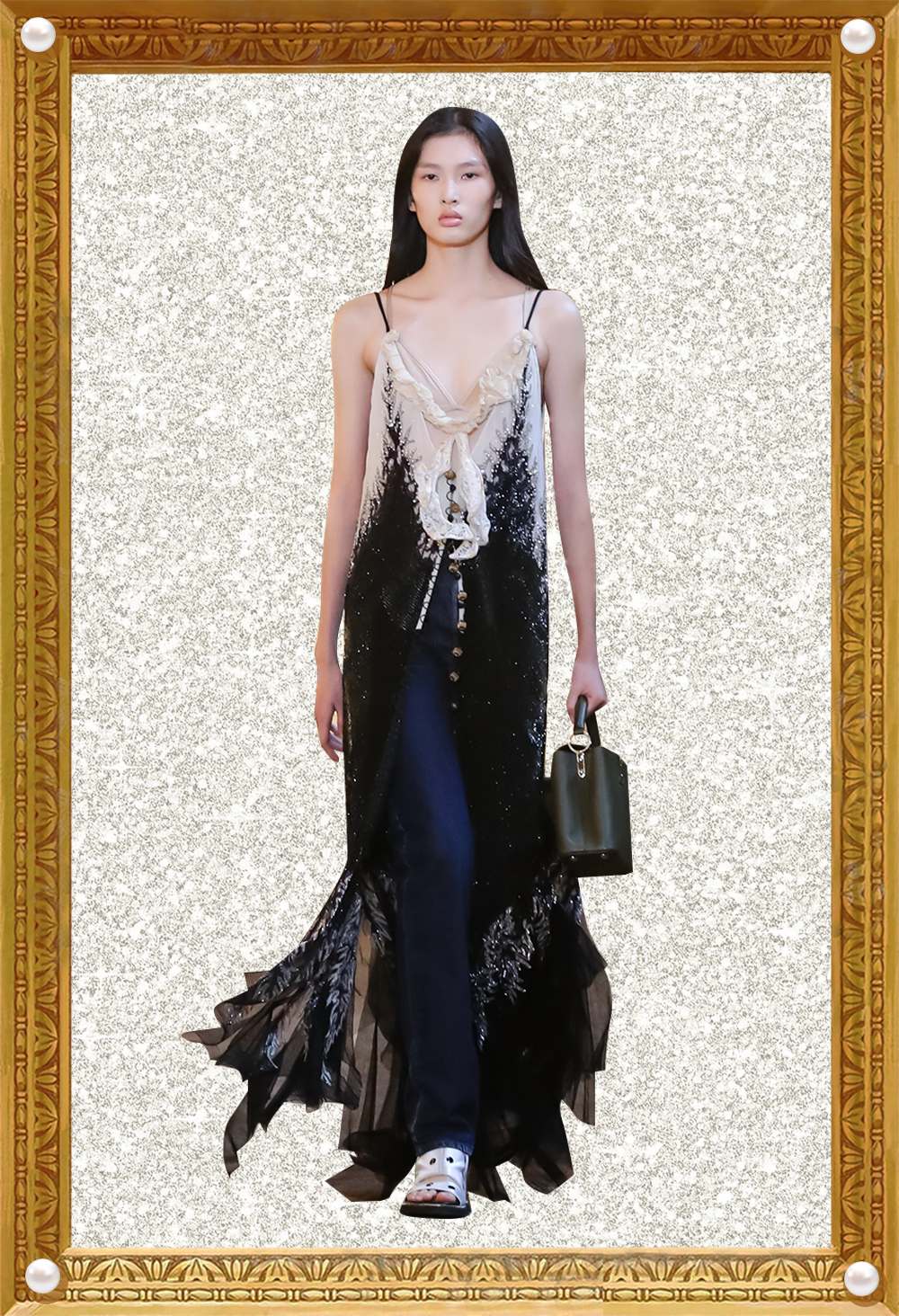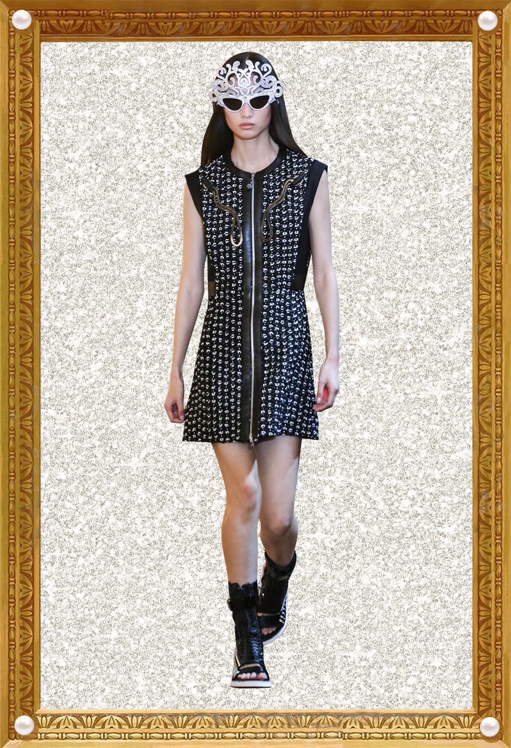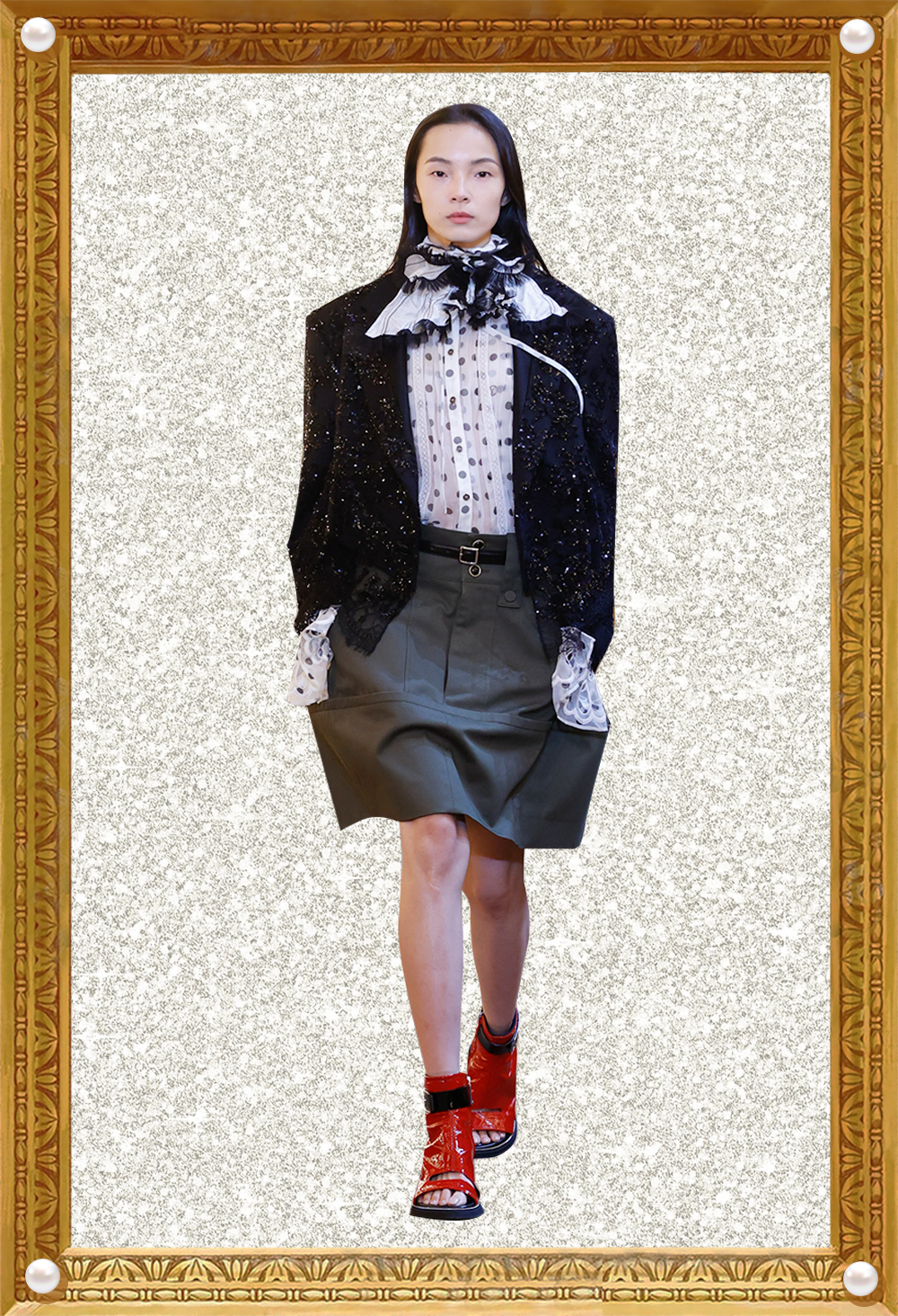 Nicolas Ghesquière来自法国的一个偏远小城市,但他从12岁开始就展露出设计的才华。 他最大的消遣就是在纸上画画,有时设计衣服,有时设计汽车,有一次还把奶奶家里的水晶灯吊坠改装成了入时的耳环。(不知道这次秀场的水晶灯布置,和Nicolas的水晶灯耳环有没有关系?)(Louis Vuitton FW 2014) 18岁的时候,尽管父母极力反对,他还是拒绝了艺术院校的录取,一个人单枪匹马地杀到巴黎,成为了设计师Jean Paul Gaultier(让·保罗·高提耶)的一名小助理。 当时的Nicolas干得最多的活儿不是设计,而是跑腿买咖啡和无休无止的复印打印,但这却是他第一次有机会接触到真实的时装行业。亲眼见证一个完整的系列从无到有的诞生,这可能是比学历更加重要的体验。 Jean Paul Gaultier每次创作新系列的时候都会先描述出自己想要的感觉,他的灵感来源乍听之下会让人倒吸一口冷气:东一点民族元素,西一点宗教元素,看上去毫无章法可言…… 但最后他总有办法把这些零散的灵感全部都烩制成自己全新的创作,而且最厉害的是:毫无生搬硬凑的痕迹。 这种魔法般的融合手法也深深地影响了Nicolas Ghesquière,为他之后的设计奠定了理念上的基础。