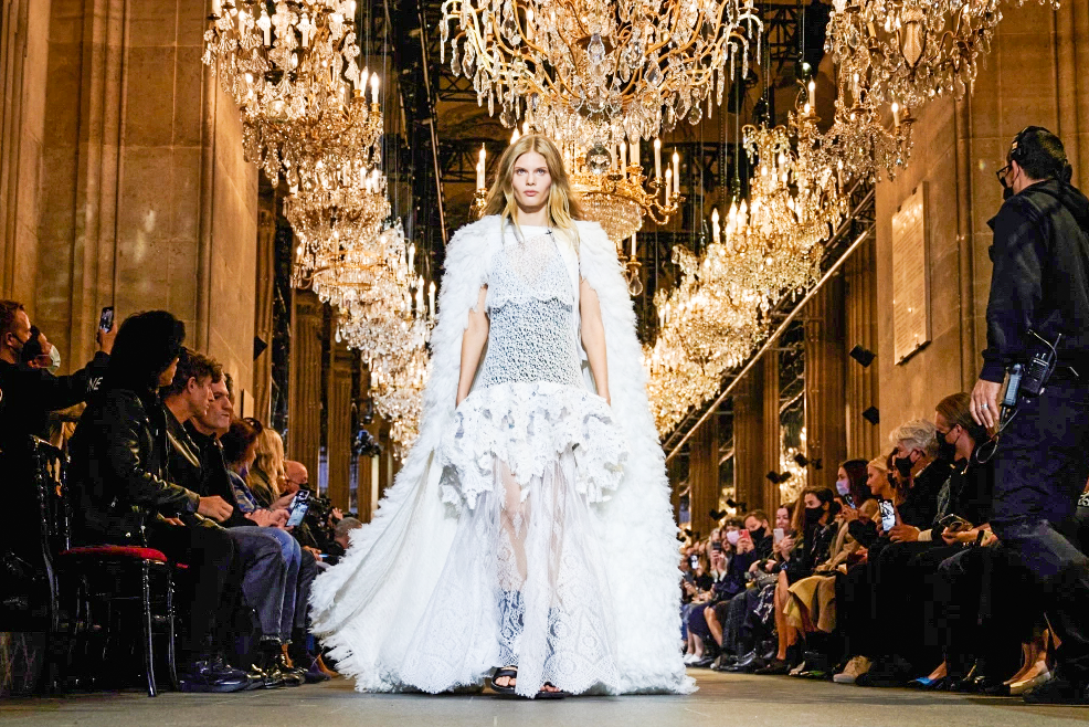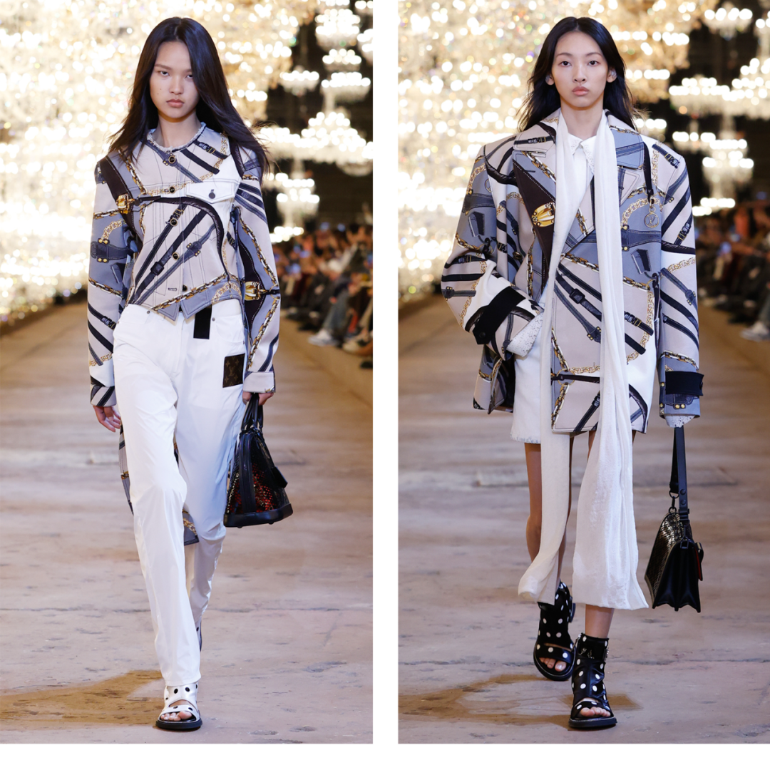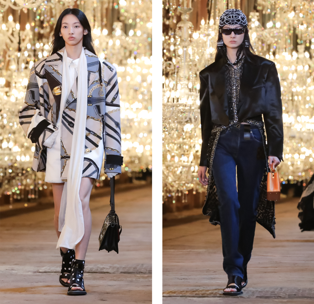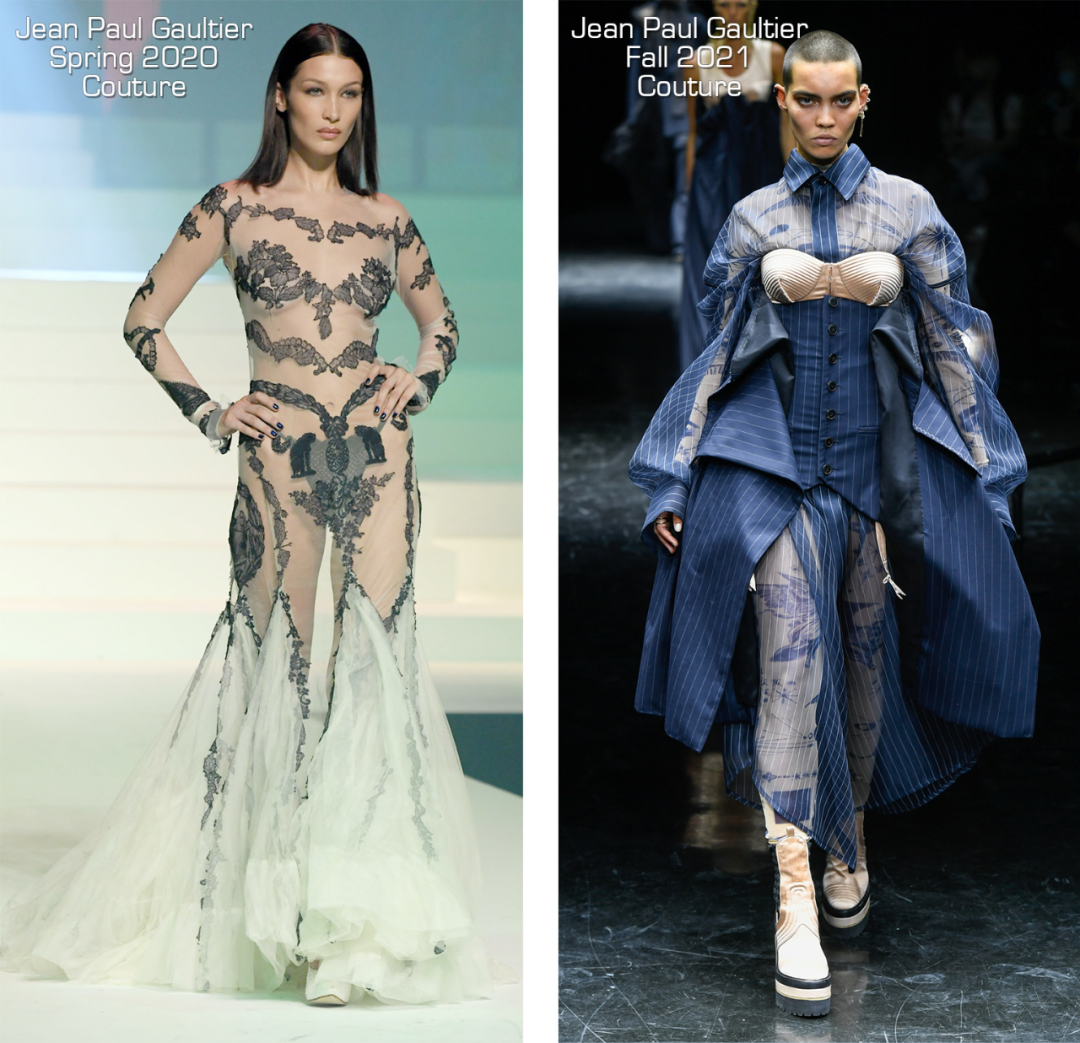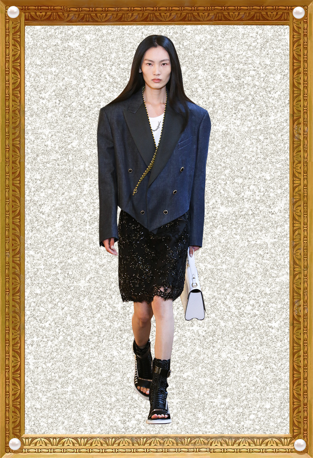 Nicolas Ghesquière来自法国的一个偏远小城市,但他从12岁开始就展露出设计的才华。 他最大的消遣就是在纸上画画,有时设计衣服,有时设计汽车,有一次还把奶奶家里的水晶灯吊坠改装成了入时的耳环。(不知道这次秀场的水晶灯布置,和Nicolas的水晶灯耳环有没有关系?)(Louis Vuitton FW 2014) 18岁的时候,尽管父母极力反对,他还是拒绝了艺术院校的录取,一个人单枪匹马地杀到巴黎,成为了设计师Jean Paul Gaultier(让·保罗·高提耶)的一名小助理。 当时的Nicolas干得最多的活儿不是设计,而是跑腿买咖啡和无休无止的复印打印,但这却是他第一次有机会接触到真实的时装行业。亲眼见证一个完整的系列从无到有的诞生,这可能是比学历更加重要的体验。 Jean Paul Gaultier每次创作新系列的时候都会先描述出自己想要的感觉,他的灵感来源乍听之下会让人倒吸一口冷气:东一点民族元素,西一点宗教元素,看上去毫无章法可言…… 但最后他总有办法把这些零散的灵感全部都烩制成自己全新的创作,而且最厉害的是:毫无生搬硬凑的痕迹。 这种魔法般的融合手法也深深地影响了Nicolas Ghesquière,为他之后的设计奠定了理念上的基础。