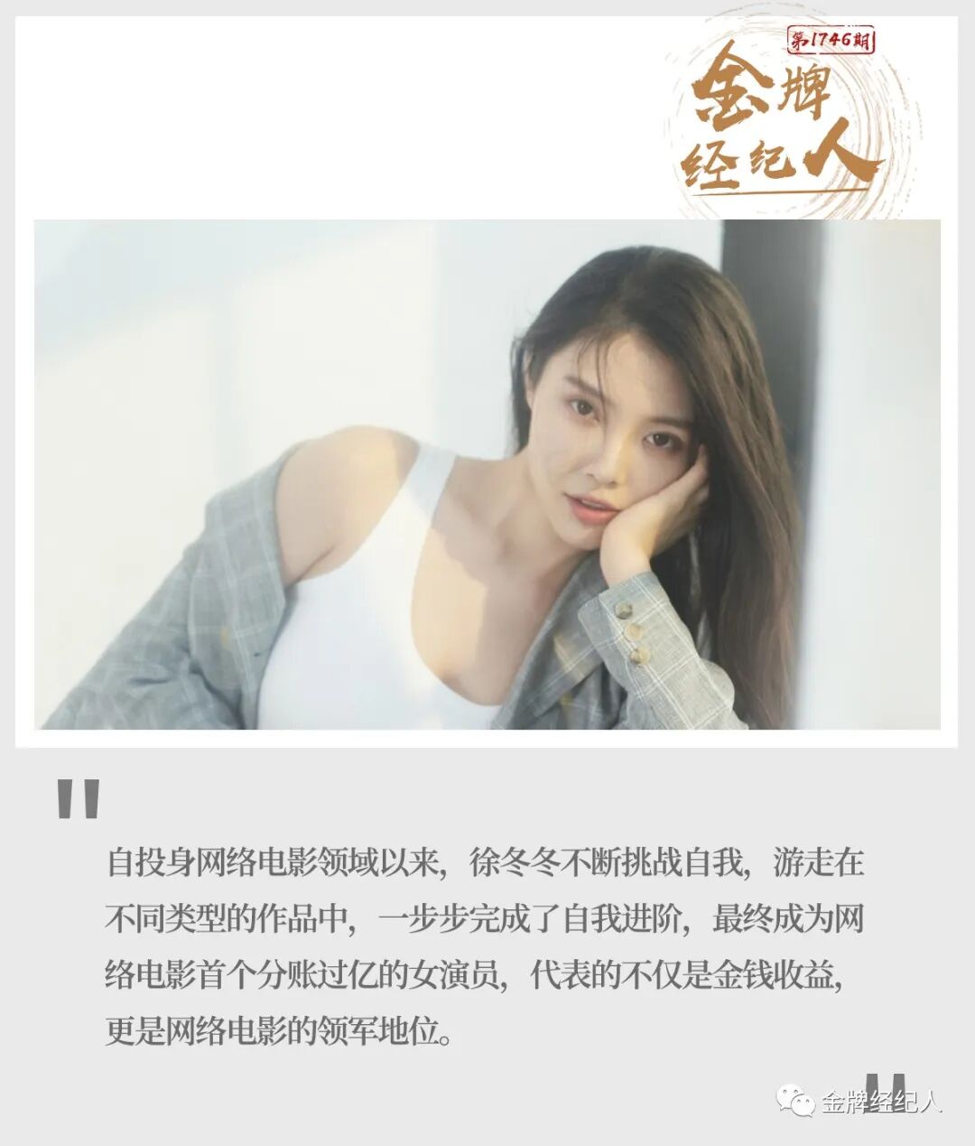 可以说,自投身网络电影领域以来,徐冬冬不断挑战自我,游走在不同类型的作品中,一步步完成了自我进阶,最终成为网络电影首个分账过亿的女演员,代表的不仅是金钱收益,更是网络电影的领军地位。同样,徐冬冬明白现在的行业态势,对于走性感路线造成的争议,她但求无愧于心。