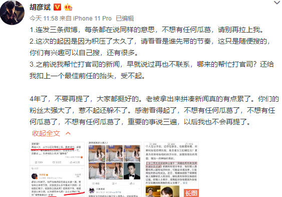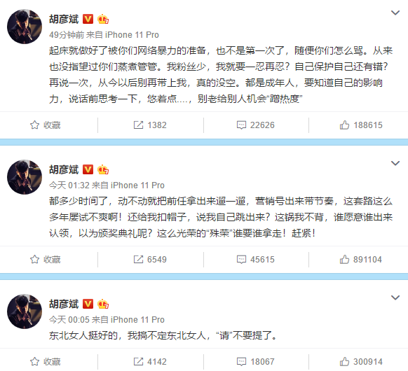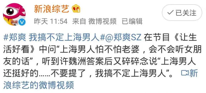 分手4年后,胡彦斌深夜抓狂:“郑爽,我的恐怖前任!” GirlDaily 内地男星 2020-05-22 21:00:36 831 创作不易,用心坚持,欢迎请BaGua喝几杯爱心咖啡!打赏并支持本文 打赏并删除本文 Hello大家晚上好!今天是怜爱斌斌的吃瓜女孩Gigi。这个瓜发酵到了现在,你们也知道我要涛的是谁了吧?接下来,欢迎来到《我的恐怖前任》。先看看今日份的女主角——爽。今天,爽爽子又霸占了一天的热搜。起因,是她在节目上提到上海男人是不是都怕老婆的问题。(此处划重点,自己主动cue出话题的)再从老婆扯到女朋友,“那到底会不会听女朋友的话?”又夸了一下“我觉得上海男人真的是挺好的”。事情到了这里就就还挺合理。直到......“我搞不定上海男人,别提了,有积气。”细品一下,爽味扑鼻。许魏洲开玩笑似的吐槽道:“是你硬要提起。”哈哈哈哈哈哈也是耿直boy了。姑且算是随口一句话吧,只是话题度到了,有火药味的热搜自然也来了。再来看看今日份的男主角——斌。是的,他就是爽口中的那位“上海男人”。害,放错图。对于斌来说,5月21日晚是再普通不过的一晚。直到刷手机,看见前任公然在节目里暗讽自己。斌气不打一处来,分别在5月22日凌晨0点、1点以及早上9点、12点,接连4次怒怼郑爽、yxh和她的粉丝们。“东北女人挺好的,我搞不定东北女人,‘请’不要再提了。”“都多少时间了,动不动就把前任拿出来遛一遛。”“都是成年人,要知道自己的影响力,说话前思考一下。”“不想有任何瓜葛了。”他没想到自己一发声,引来无数人骂。什么“男人还是大度点吧,女生随便说些怨话就吵起来,有点小鸡肚肠了。”什么“别再给自己加戏了”,怎么难听怎么来。还被爽粉曲解“主动爆分手细节”,反向攻击他蹭前女友的热度。可很多证据,都是记者采访或主持人主动提问。一些网友为了黑他,不惜颠倒黑白。为什么胡彦斌这次被cue,会这么暴脾气呢?其实,Gigi还蛮能理解斌的。两个人相爱过,在恋情被曝时,胡彦斌被大家群嘲“丑、好白菜都让猪拱了”。长期被网络暴力,换谁都不好受。但当爱已成往事,他们对彼此的回忆也曾有尊重。郑爽把和胡彦斌恋爱的100件小事写进了新书里,真情实感,胡彦斌发文支持。如今,他们已经分开4年。本来过着各自安好的生活,互不打扰的话,也挺好的。因为在分手后选择放过对方,本来就是作为对过去感情的尊重。可是分手见人品。热搜常客郑爽,会不知道自己的影响力吗?一声“受不了上海男人”的吐槽,一句“积气了”的谴责,在全网播出之后,会产生多少谩骂男方的噪声?出道多年的她,未必真的不清楚。而这,也不是她第一次因为前任上热搜——和张翰隔空同框。细想一下,如果性转张翰去做这样一场策划,大概率会被喷”伤害小爽“吧。可她对前任一次次分手后的捆绑,都因为她给大众的真性情人设,而被纵容。那么,郑爽的真性情,”真“究竟有多少浓度?来看——说明在先,Gigi曾经也是郑爽的路人粉。她的外表,是真的灵。刚出道那会儿,幼态五官天真无邪,有一种不谙人世的动人。扮古装也好看。像是森林里一头迷路的小鹿。就算后来,她做出很多让大众无法理解的行为——和张翰谈恋爱时,因为太自卑所以选择整容,希望对方能因此更爱自己。有一些自虐倾向。因为觉得自己胖,就没人会喜欢。所以用自毁健康的方式减肥,因为暴瘦而上了热搜。可她的自卑、敏感、脆弱、较真、以及因此而宣泄的愤怒,却意外引起共鸣和怜惜,是非常有观众缘的苗子。恋爱综艺节目里,前任之一张恒给她挑的衣服,试了没一件满意。张恒开始有点冲:我以后再也不买衣服了。郑爽几乎是下意识地讨好当时的男友,并不断自我攻击。“都怪我长得不好看,穿什么都不好看,都跟你想的样子不一样。都是我的错,一定是我的长相配不起这些衣服。我身材也配不起这些衣服。”很多亲密关系中低到尘埃里的女生,会感同身受她的弱和痛。所以,一直以来,不管再作,业务能力再差,舆论和大众还是对她很宽容。可......不知从什么时候开始,“真性情”似乎变成她利用自己的一种营销手段。甚至,也是她唯一的作品。如果说一开始的“刚”,是因为她一方面敏感较真,一方面被环境习惯性漠视后,而展示在镜头前的,不怕得罪人的率直。比如《这就是铁甲》里,由于裁判读秒失误拖时间发火。那么后来所谓的率直,却成为了一种伤害别人的利器。狂怼魏大勋“凭什么听你的”、“你是什么大咖啊”、“你有什么资格”。白敬亭正正经经地发剧终感言。她用小号回图——耽误整个剧组团队的工作流程,但没关系,毕竟调整好过自己想过的生活最重要。她维持当红小花的流量,凭借的也不是作品。而是,#郑爽瘦了#,#郑爽胖了#,#谈恋爱了#,#郑爽吃肉了#。至此,郑爽彻底完成了从有灵气——放飞自我——令人生理不适的转变。没错,郑爽的形象,让许多有性格缺陷的女生代入感很强。但她自己,对其他人真的有共情能力吗?如果爽曾在街头因迷路而痛哭过,为什么还会在异国他乡丢下小伙伴到天黑?(此处参照《走进花学之杨洋走丢事件》)她真的是单纯小白花吗?《走进花学之帐篷事变》中,不想睡房车又忌惮被观众发现。直接向宁静使眼色,示意有摄像头。前任的私生活,甚至也可以拿来商业变现。郑爽爸爸创立的XX面膜,宣传时竟然tag#张翰古力娜扎分手#。(现在已经删掉了,但互联网是