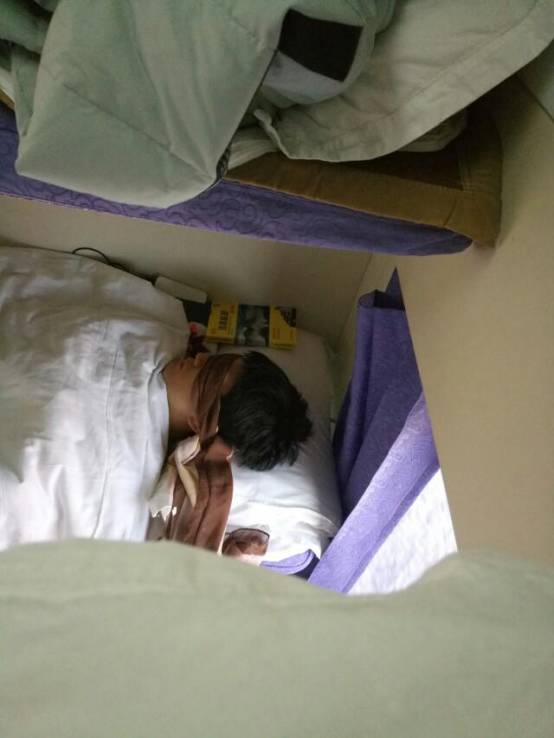 网友“七尺七的身高是256_666666667”:2017.2.7号的火车。太困了什么姿势都有,女人是汉子还是淑女,看来是天生的。女的短皮裤,现在喜欢学超人啊!短裤穿外面。