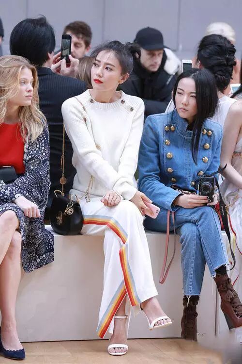 一般来说,皮肤够白的话穿上浅色高跟比如金属色能够拉长腿部至脚跟的视觉比。比如小个子周冬雨穿的这双,没有过于单薄的同时,又和短裙相衬显腿。