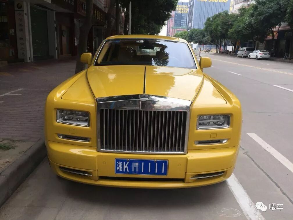 走近看,和杨臣刚合影的那台一模一样。车身颜色太有辨识度了,这种大黄色的劳斯莱斯幻影在国内有第二台吗?不仅是娄底唯一,也是湖南唯一的劳斯莱斯。