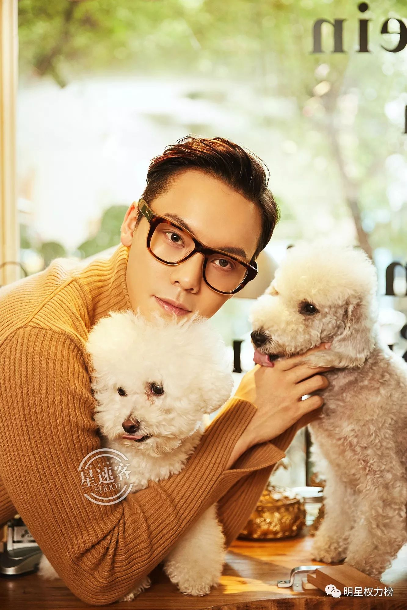 陈伟霆戴上眼镜更显斯文,怀抱宠物狗画面更加温馨。