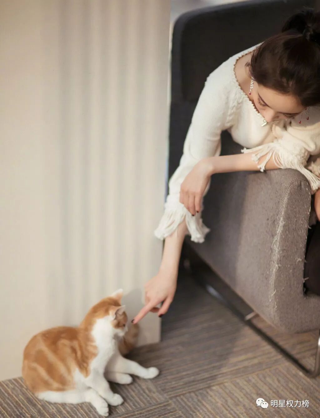 杨幂携手“当红流量”喵大仓和喵泥泥演绎居家风美照,好想变成这只猫被大幂幂抱在怀里。