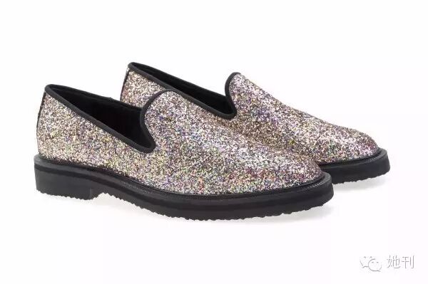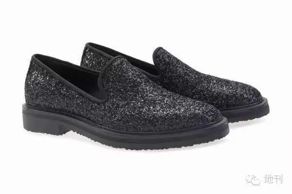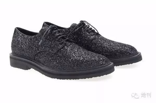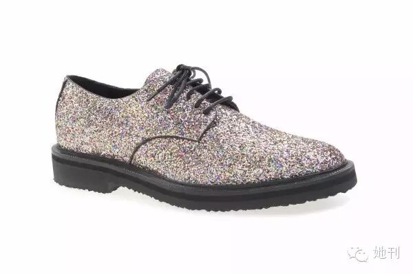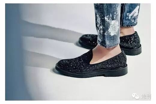 看看你们老公GD脑洞大开的设计:表面发出闪闪亮光的鞋子融合华丽街头、庞克、摇滚文化,充满时尚的能量。