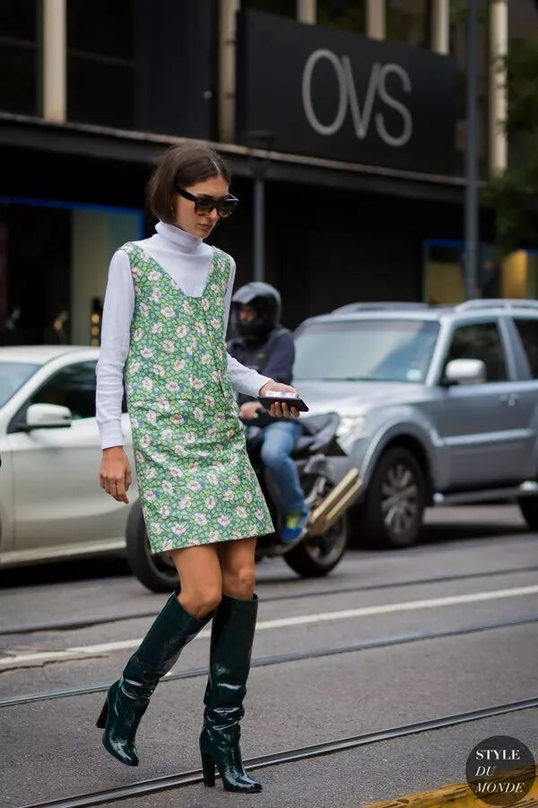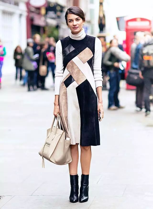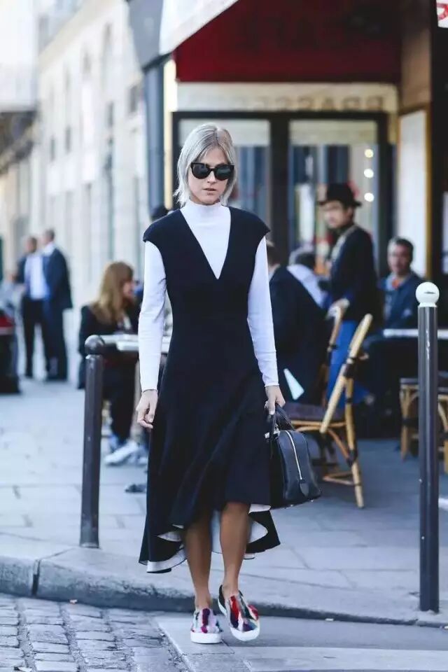背心裙和高领秋衣的叠穿也是今年秋冬最IN的穿搭呢!