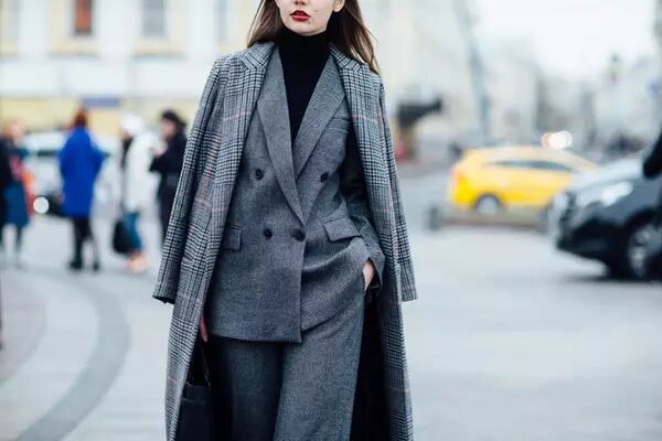 格纹罩衫既正式又显休闲,慵懒随性的设计正好可以凸显出高领衫的浪漫感。