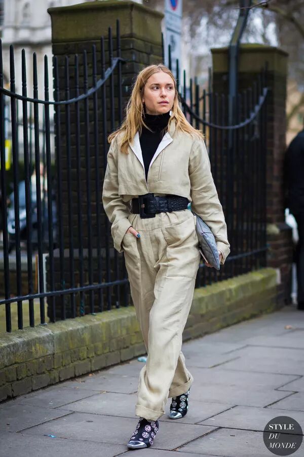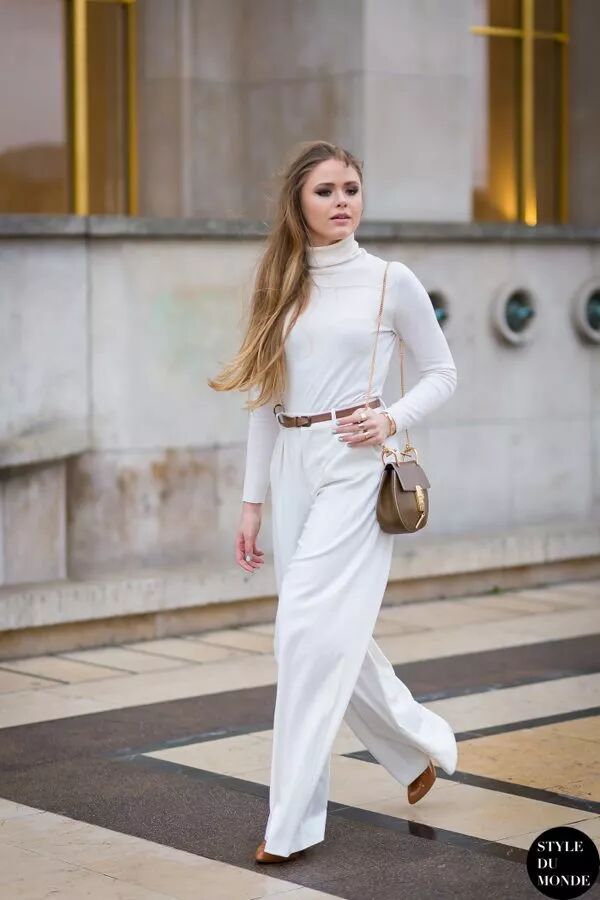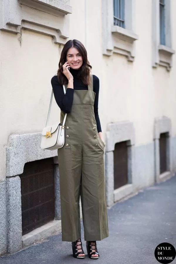 除了妹子们喜欢的连衣裙,连体裤在冬天也能大放异彩,配上纯色高领衫就可以轻松穿出高级质感!