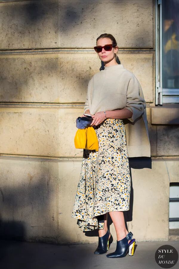 印花裙文艺清新,并且自带迷人小气质,跟优雅的高领秋衣非常搭 !适合南方还不冷的地方。