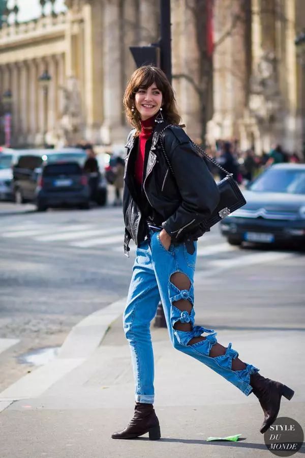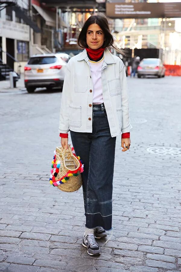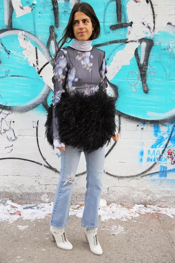 Leandra Medine这套造型则示范了如何把那些没办法正式穿出门的单品变成时髦的高街Look!