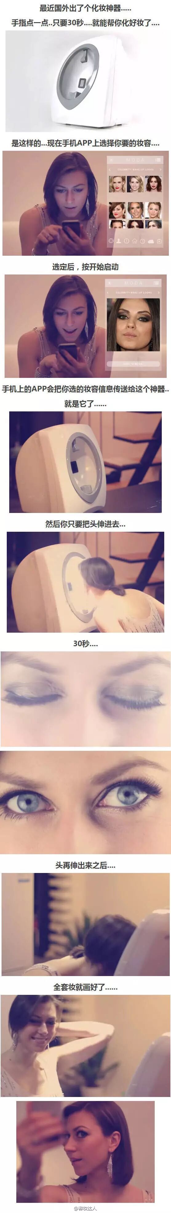 歪果仁又发明了一个碉堡的化妆神器——自动化妆机,而你要做的只是选择你想要的妆容~看来,歪果仁的脑洞只能女娲来补了