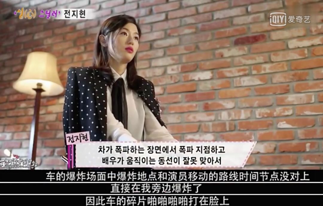 拍摄《柏林》爆破戏时,全智贤曾被碎片划伤脸而掉了一小块肉,简单处理后却又重新开始了拍摄。