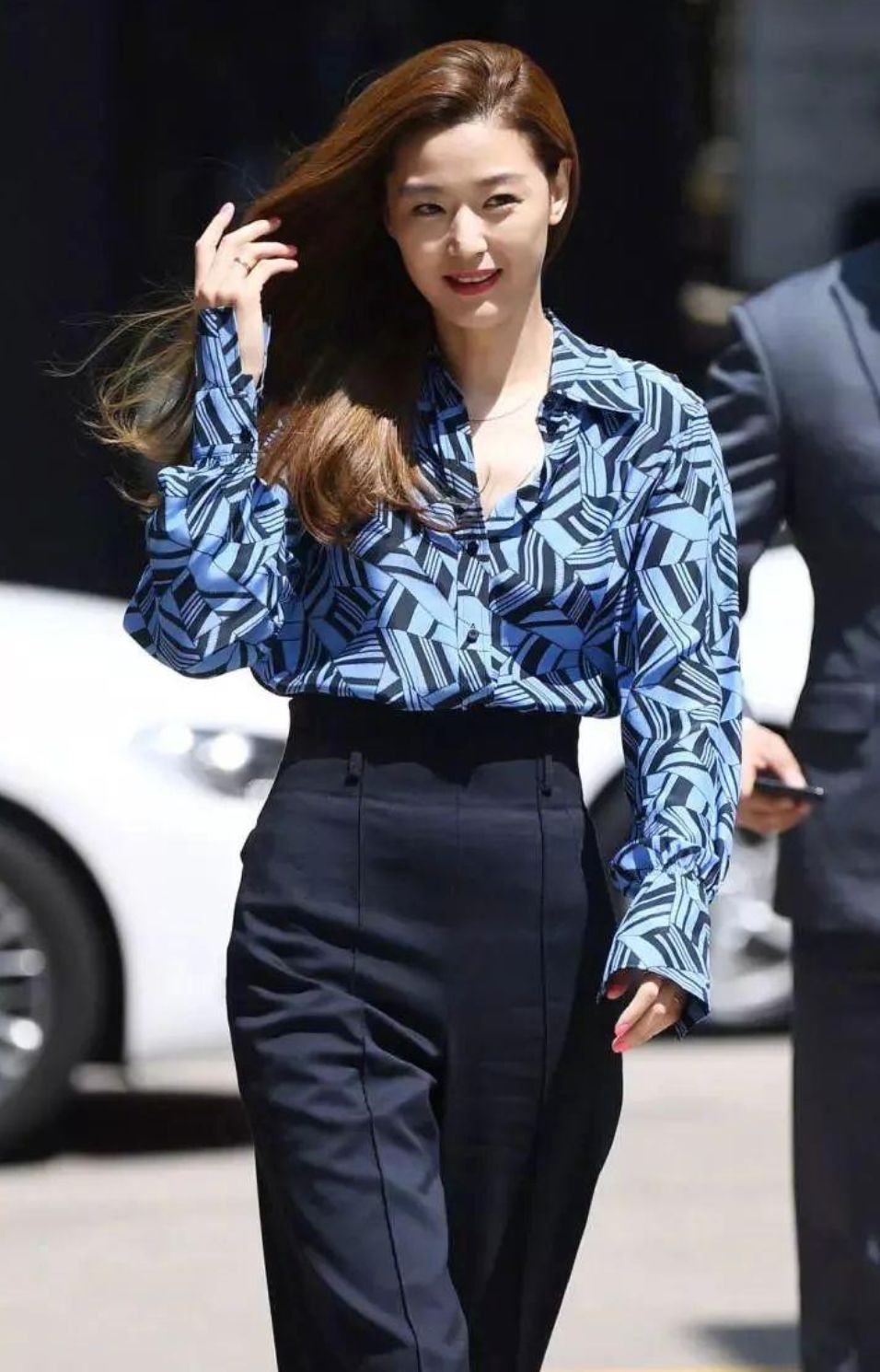 还没感慨完,上周她再次出现在人们视线中,蓝色印花长袖搭黑色高腰阔腿裤,走路带风气场全开。