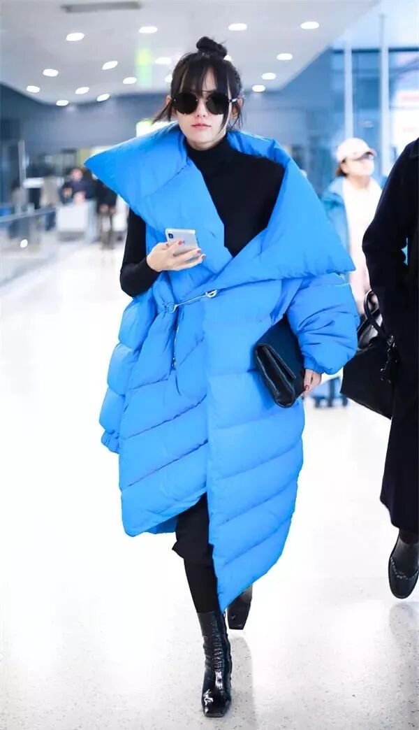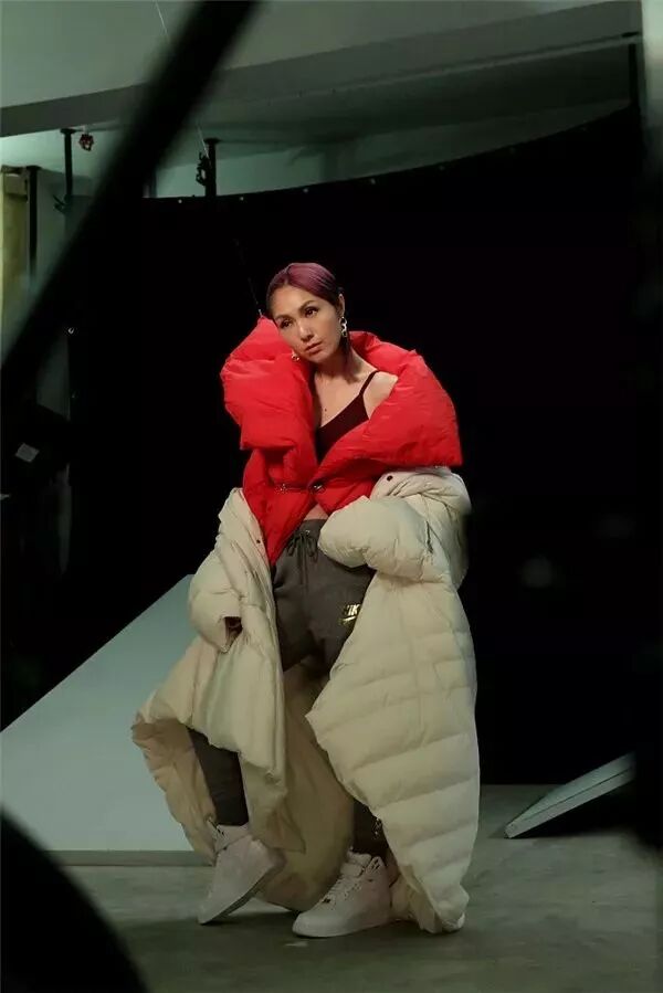 最近沉迷于凹造型的蔡依林也是玩出了新花样,Versace oversize的开叉羽绒服可以说相当有创意了,保暖和凹造型来说,显然后者对蔡依林更重要。