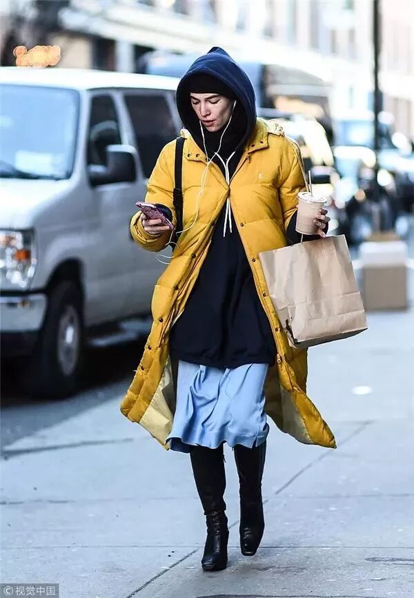 还有很多国外的潮人们都开始为羽绒服洗白,他们的时尚街拍中越来越多羽绒服的身影,不过对于他们来说凹造型显然还是占主要目的,不然也不会执着于穿着这么保暖的衣服还露肩。