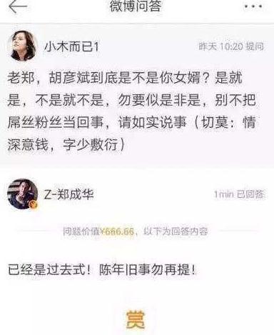 就爽爸都不看好这段恋情。有网友问到:胡彦斌是不是你女婿的时候,爽爸直接回复:已经是过去式!陈年旧事勿再提!也是一个耿直的boy啊!