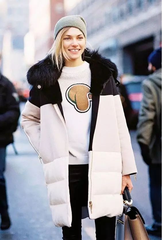 拼接款式的羽绒服,能够更多元,既有颜色的拼接,又有材质的拼接,穿上不仅保暖,还更时髦。