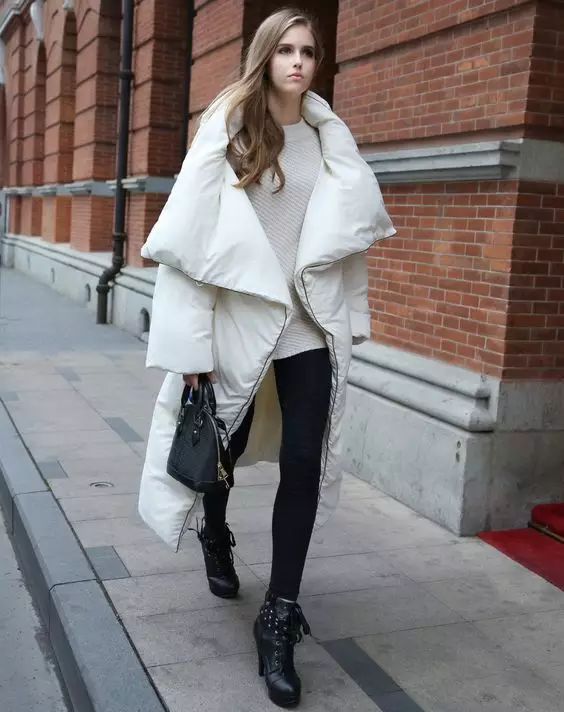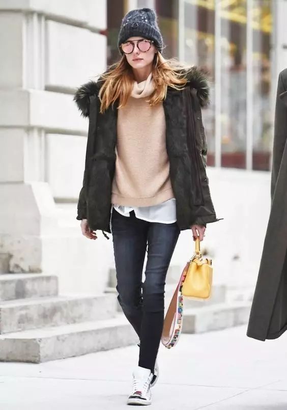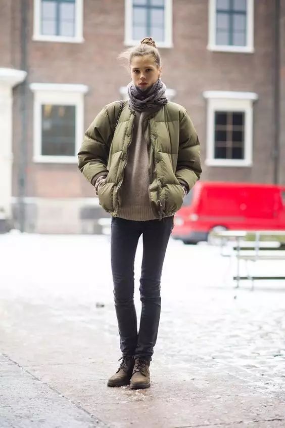 羽绒服敞开穿,里面多叠几件,毛衣啊,短裤啊,连衣裙啊,围巾啊,打造出丰富的层次,可以把最瘦的腿部露出来,最显瘦了!