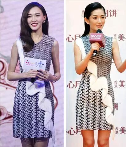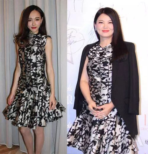 这个撞衫,谁胖谁就输了,唐嫣穿裙装很显身材,从裙子的比例和整体造型来说,是无可挑剔。辣妈李湘为了掩盖臃肿,套上霸气的西装掩饰小肚子,但是没办法,输就输在你胖了。