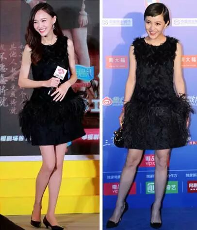 这件黑色印花连衣裙搭配黑色高跟鞋,淑女范儿十足,唐嫣把这条羽毛裙穿出轻盈感,赢了好像“超负荷”的郭采洁!郭采洁不适合这样的打扮,与她的短发气质不太搭。