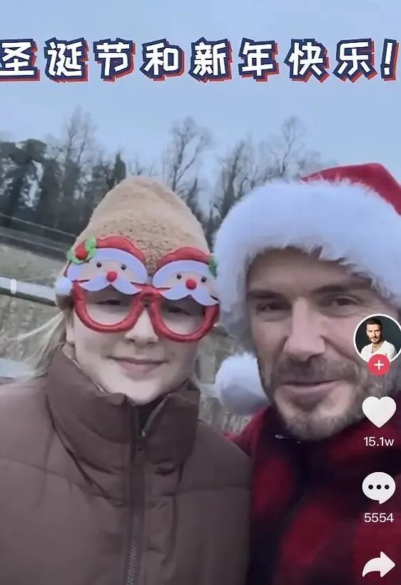 就连贝克汉姆都带着小女儿合体出镜,祝大家圣诞快乐。
