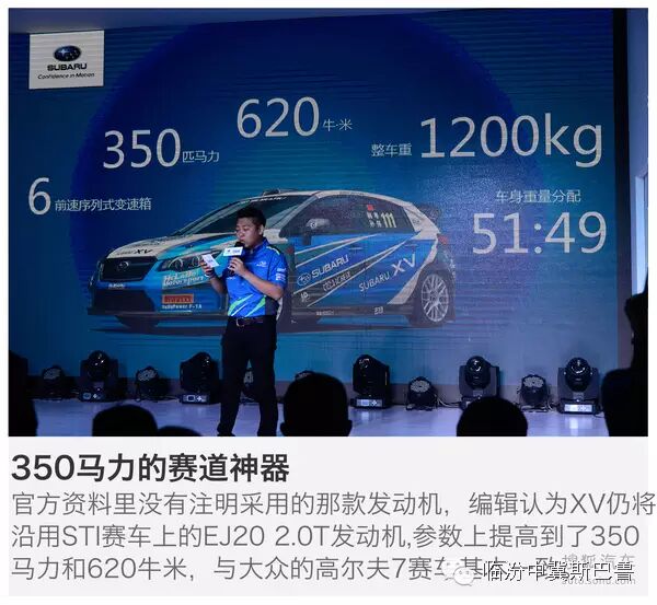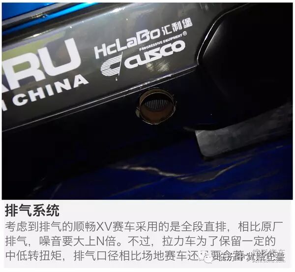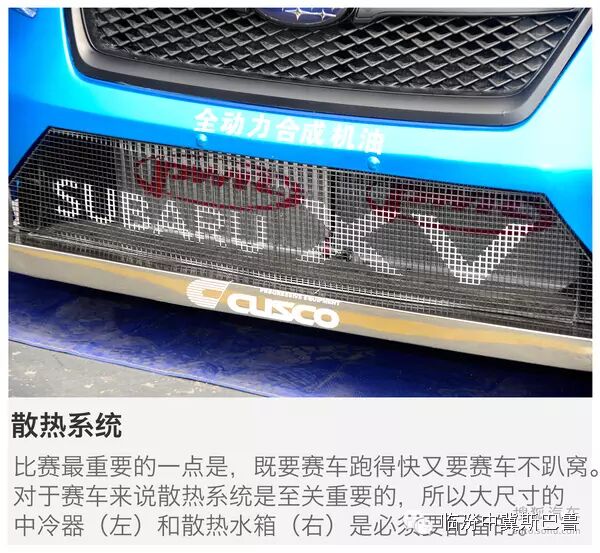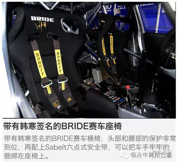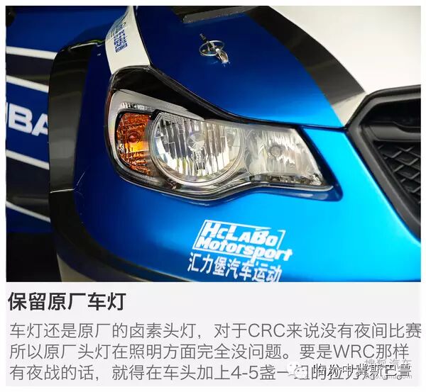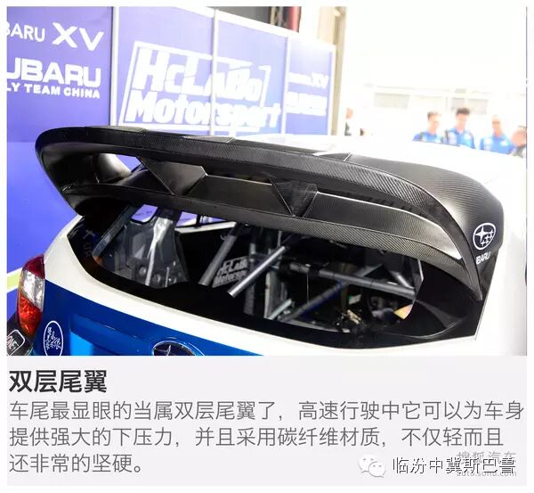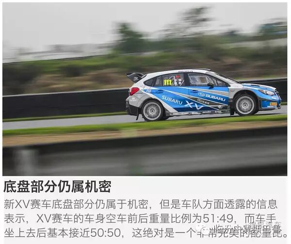 斯巴鲁中国拉力车队今年将采用全球首款SUBARU XV拉力赛车参战CRC的比赛。该赛车是以SUBARU XV为基础,按照国际汽联安全标准,同时执行中国拉力赛CRCCAR组别的技术规则改装而成,其动力采用2.0T发动机,最大马力达到350匹,最大扭矩达到620N·m/3500-6700rpm,比上一代的斯巴鲁WRXSTI赛车有了很大的提升。同时其还搭载斯巴鲁引以为傲的左右对称全时四驱系统,车身空车前后重量比例为51:49,而车手坐上去后基本接近50:50。以下笔者为你解读这款韩寒的新XV战车。