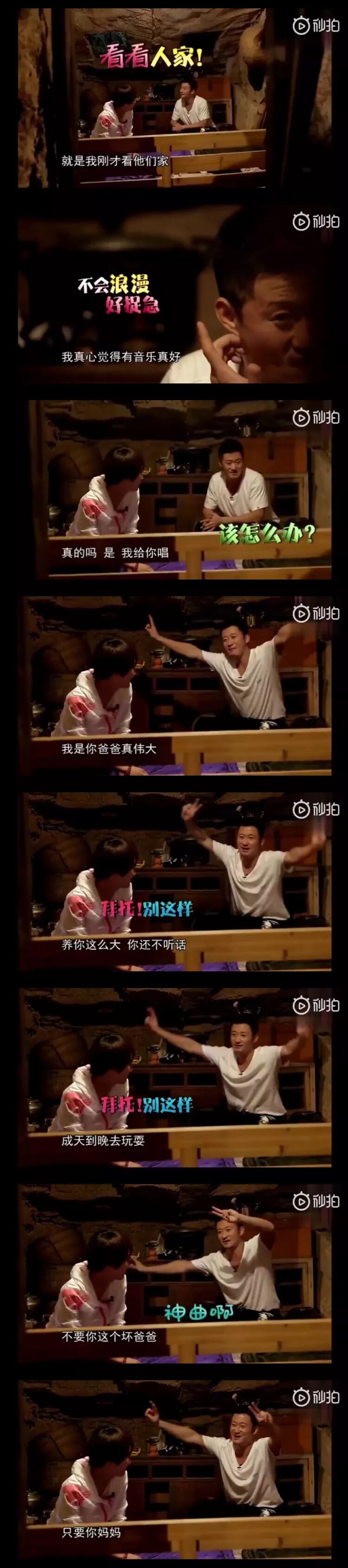 媳妇儿说羡慕隔壁有音乐,他就主动唱歌活跃气氛(虽然这歌真的好好笑哈哈哈哈哈对着媳妇儿唱“我是你爸爸真伟大,养你这么大你还不听话”只有吴京这种钢铁直男唱得出了吧?)