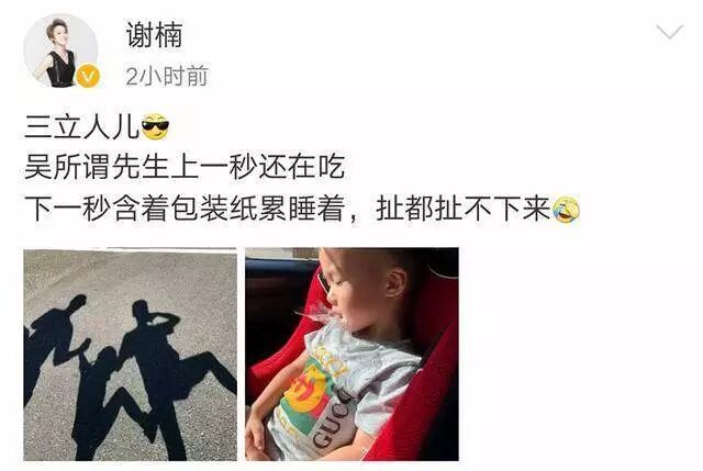 虽说如今谢楠的工作量和婚前相比是减了不少,但她确实没有完全停止了工作,依旧有参演电影和节目。除此以外,在她的微博中的日常里,不是晒娃就是晒老公,字里行间中看得出她的日子还是过得很舒坦的。