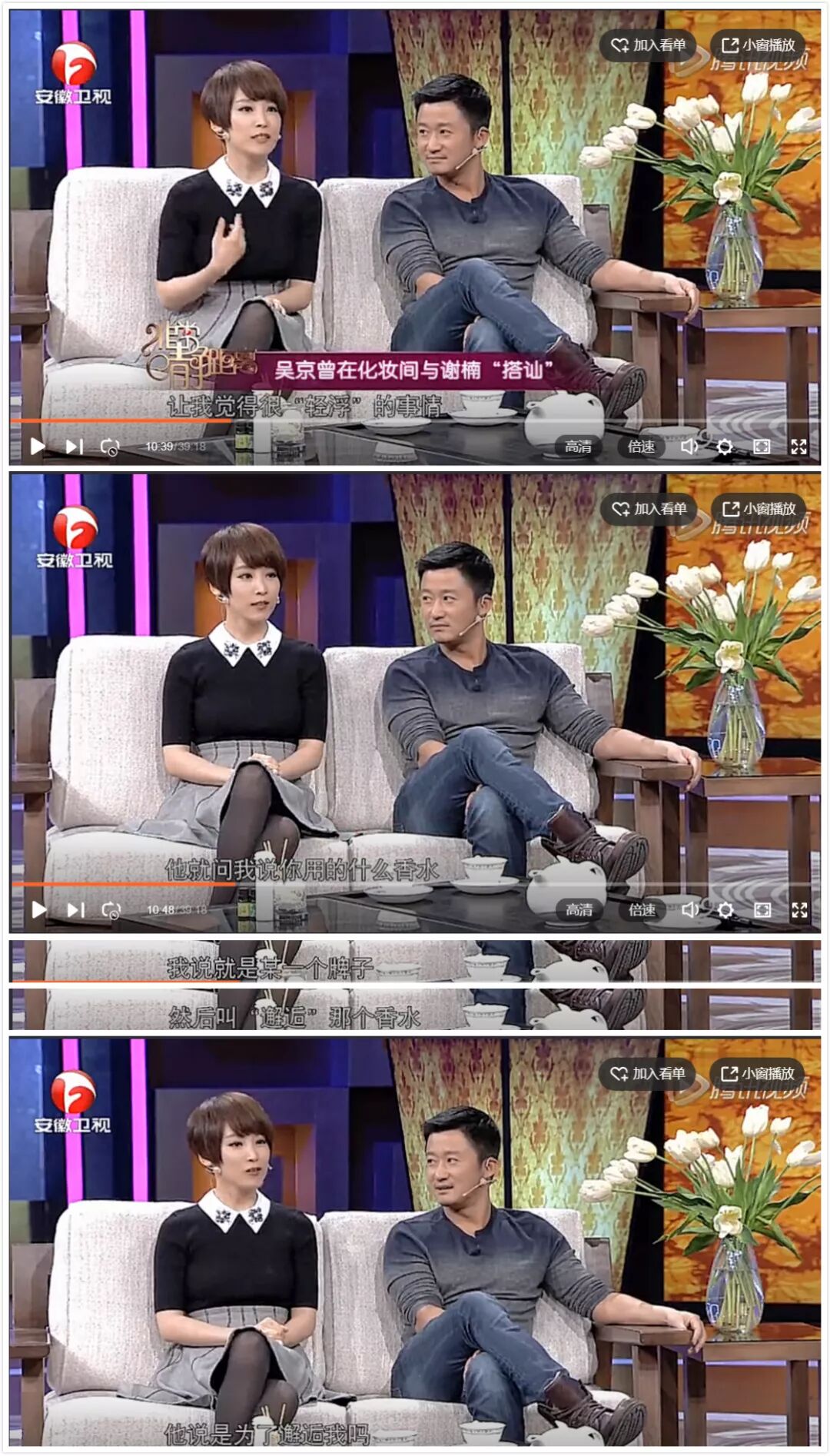两人第一次相遇是吴京作为嘉宾,接受谢楠的采访。但到了第二次访问时,画风就有点不一样了,谈到日后结婚生子的打算时,吴京突然问隔壁的谢楠:“你有男朋友吗?”